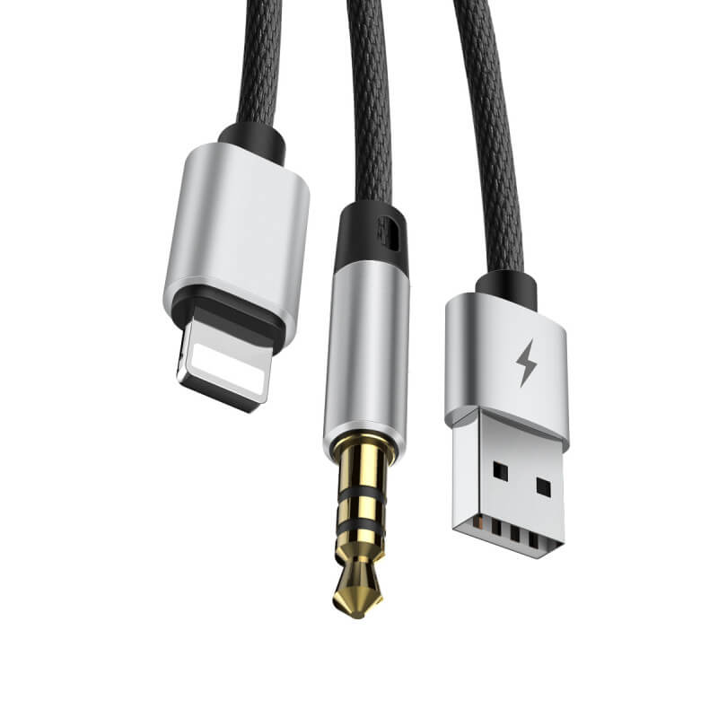 Baseus USB to Lightning + 3.5 mm Cable - USB кабел за зареждане и аудио за устройства с Lightning порт (черен)