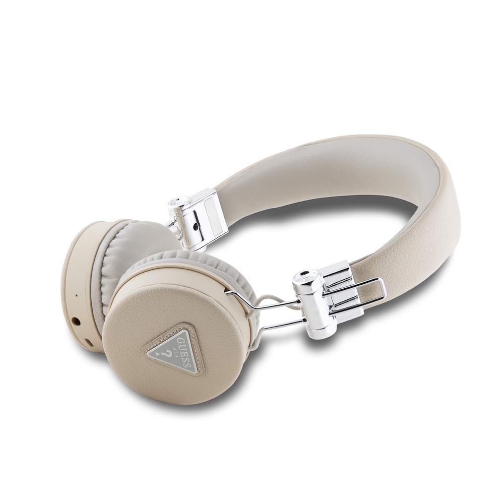 Безжични блутут слушалки с микрофон за мобилни устройства - Guess PU Grained Triangle Logo ENC Bluetooth Headphones (бежов)