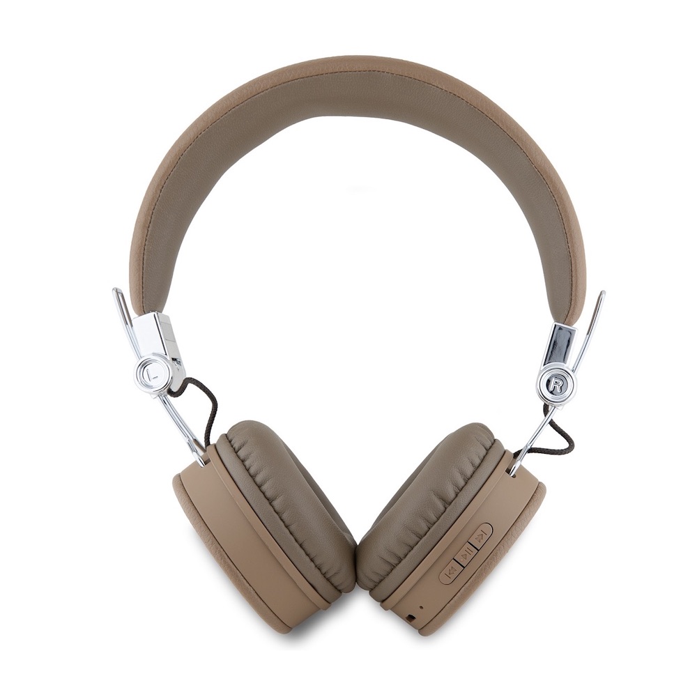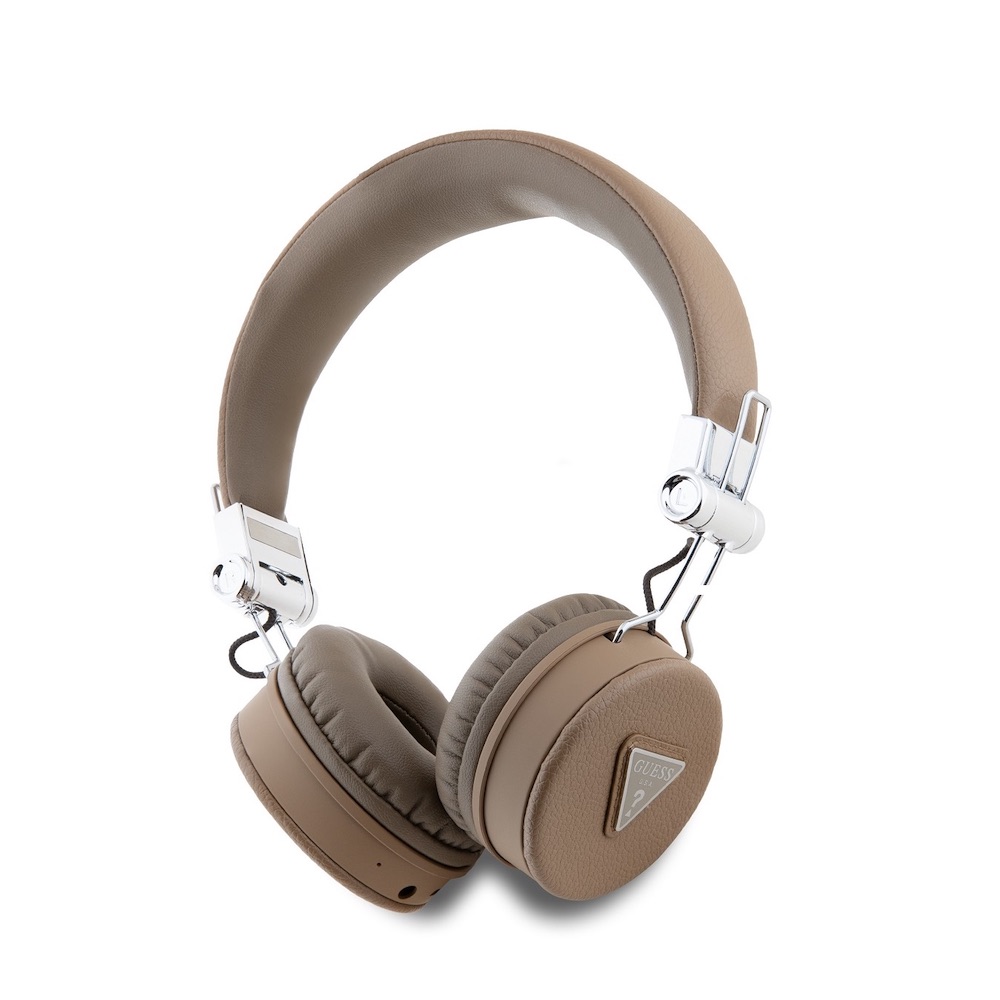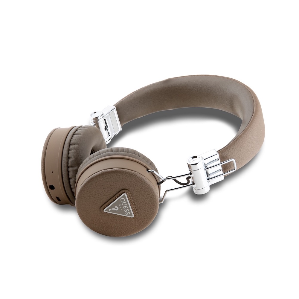 Безжични блутут слушалки с микрофон за мобилни устройства - Guess PU Grained Triangle Logo ENC Bluetooth Headphones (кафяв)