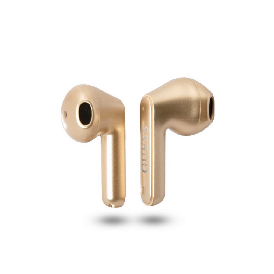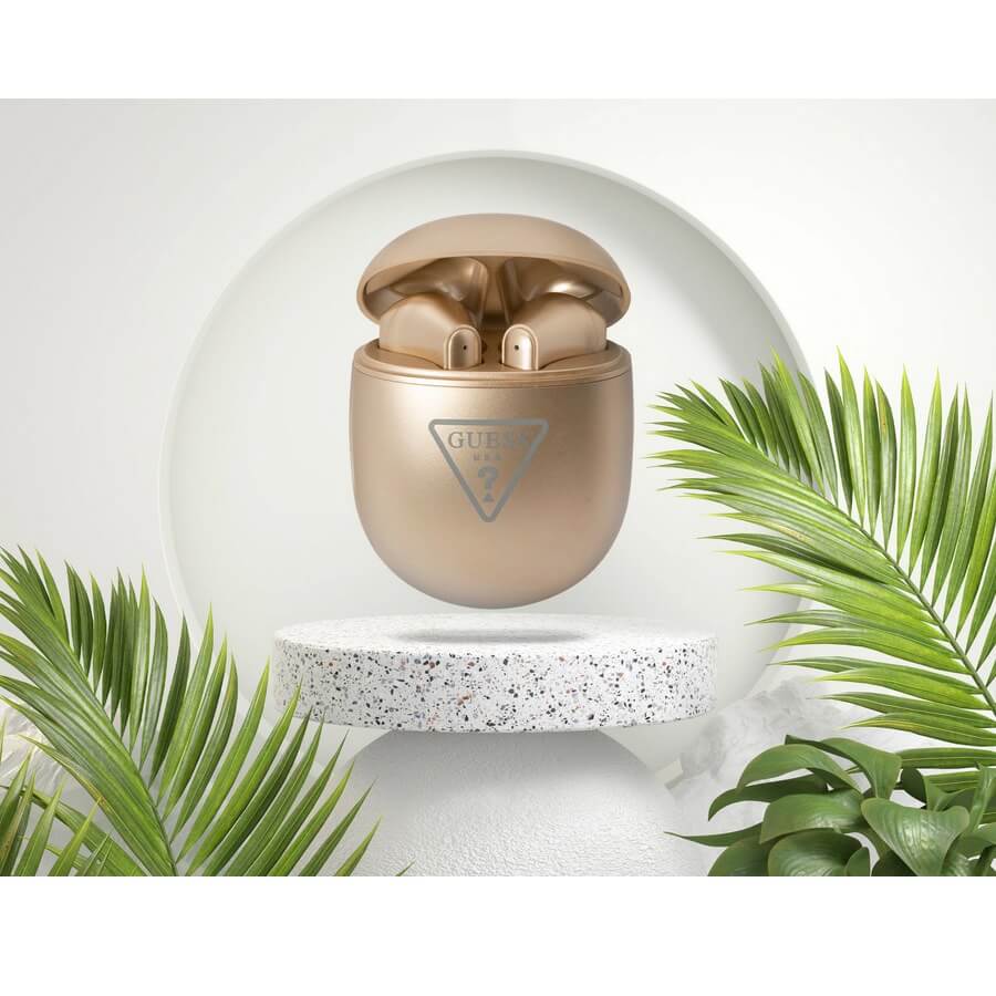 Безжични блутут слушалки със зареждащ кейс за мобилни устройства (златист) - Guess Triangle Logo 5.0 4H Stereo TWS Headset