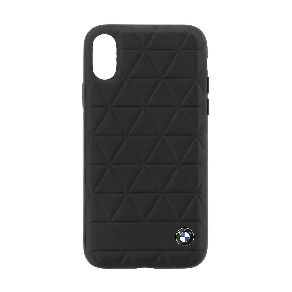 BMW Signature Embossed Hexagon Leather Hard Case - оригинален кожен кейс (естествена кожа) за iPhone XS, iPhone X (черен)