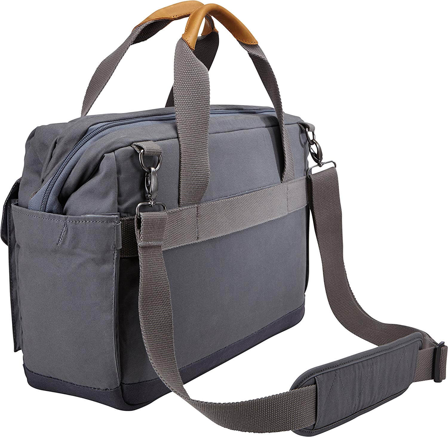 Case Logic Lodo Satchel Travel Bag LODB-115GRA - елегантна чанта с дръжки и презрамка за MacBook Pro 15 и лаптопи до 15.6 инча (тъмносив)