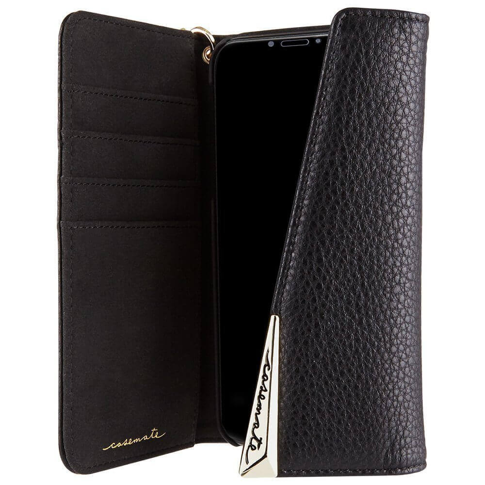 CaseMate Wristlet Folio - кожен калъф (естествена кожа), тип портфейл за iPhone XS, iPhone X (черен)