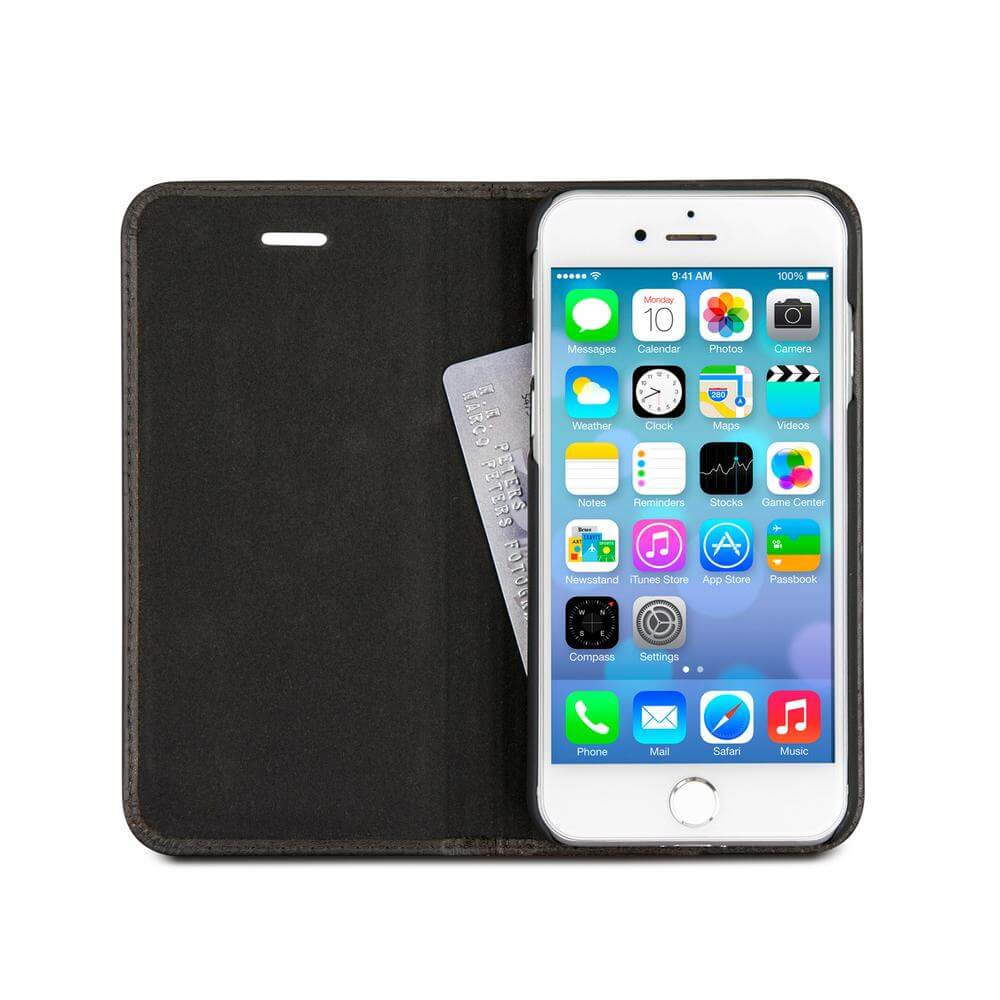 Dbramante 1928 Genuine Leather Folio Case - кожен (естествена кожа) калъф с поставка и отделение за кр. карта за iPhone 8, iPhone 7, iPhone 6 (черен)