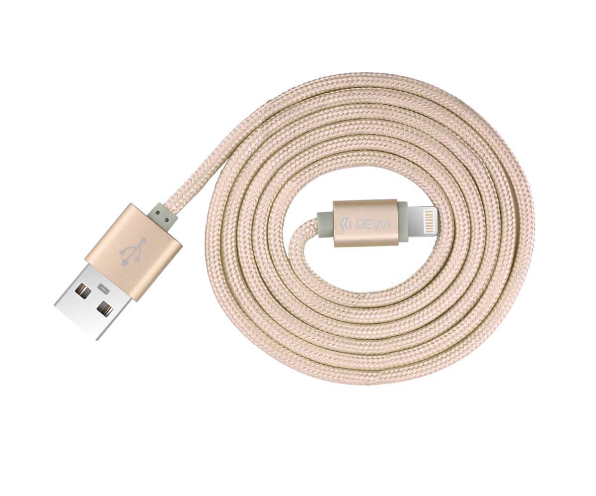 Devia Fashion MFI Lightning Data Cable 1.2m. - сертифициран плетен lightning кабел (120 см.) за iPhone, iPad и iPod с Lightning вход (златист)
