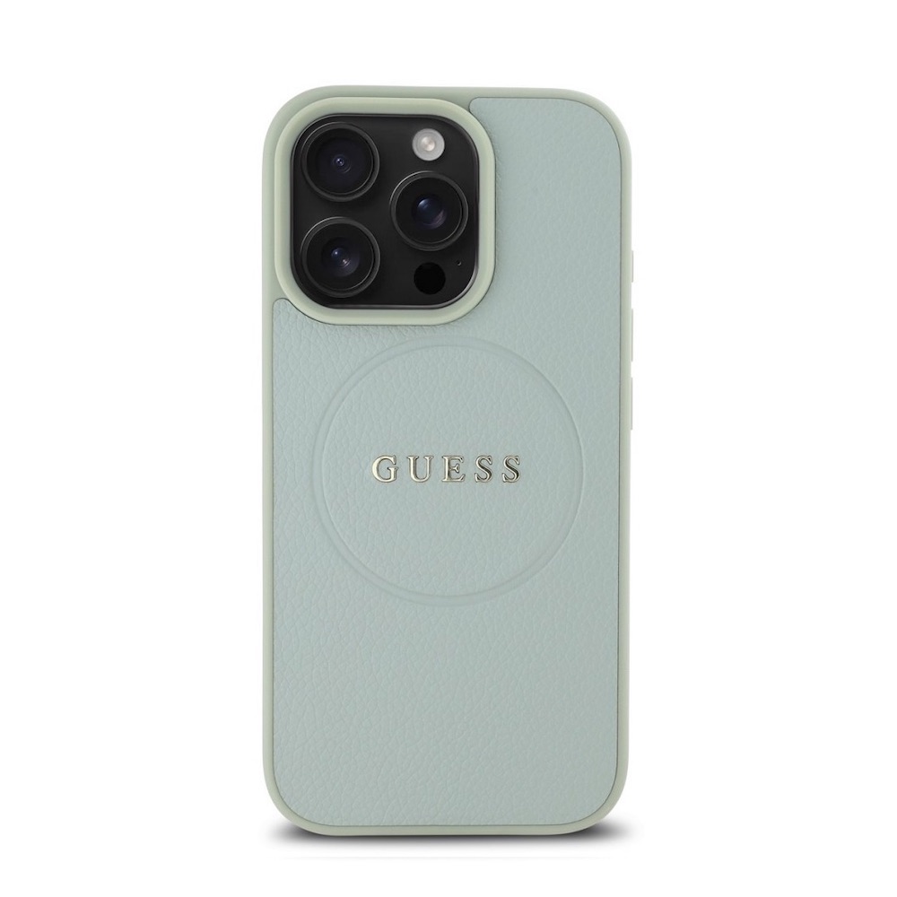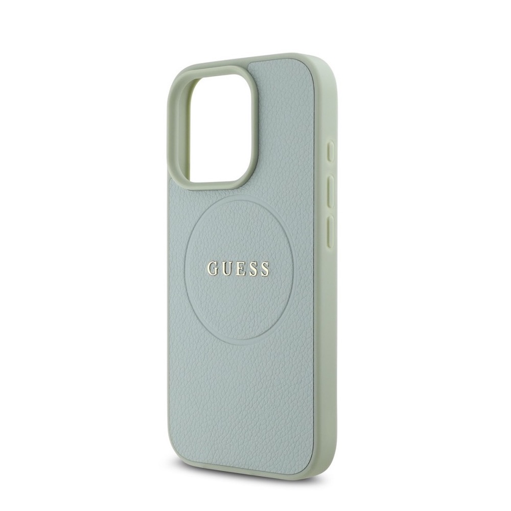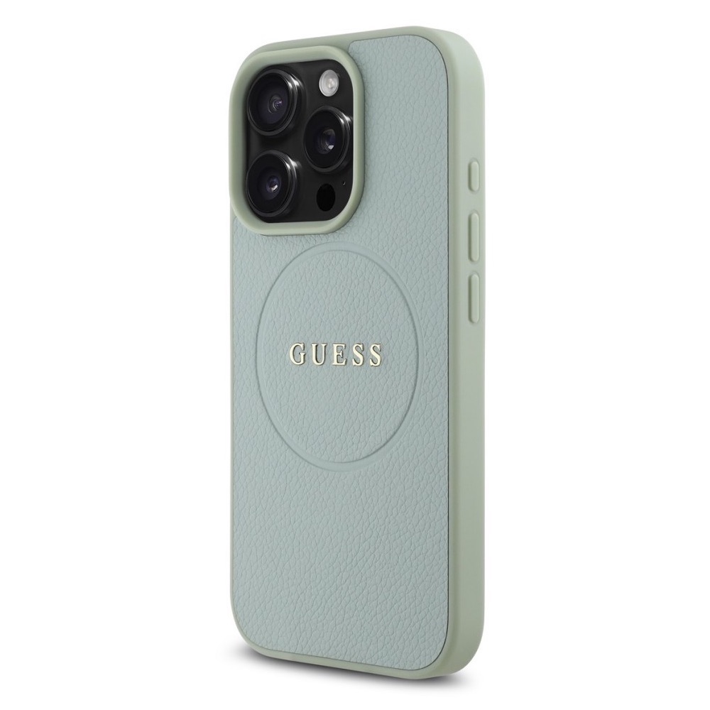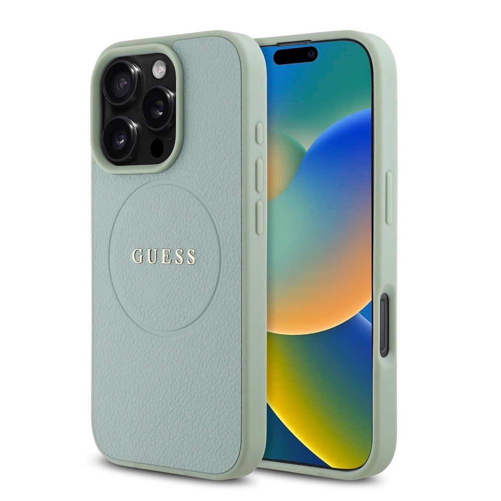 Дизайнерски кожен кейс с MagSafe за iPhone 16 Pro - Guess PU Grained Classic Logo MagSafe Leather Hard Case (зелен)