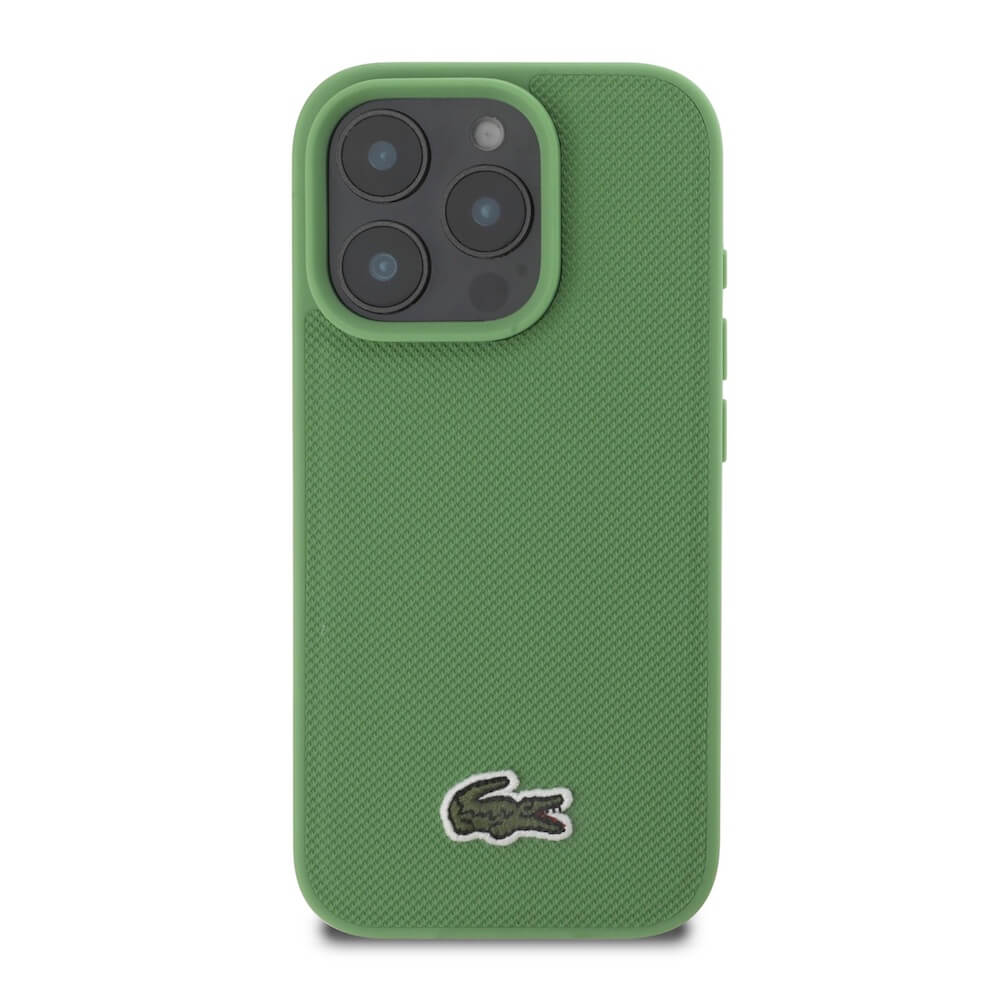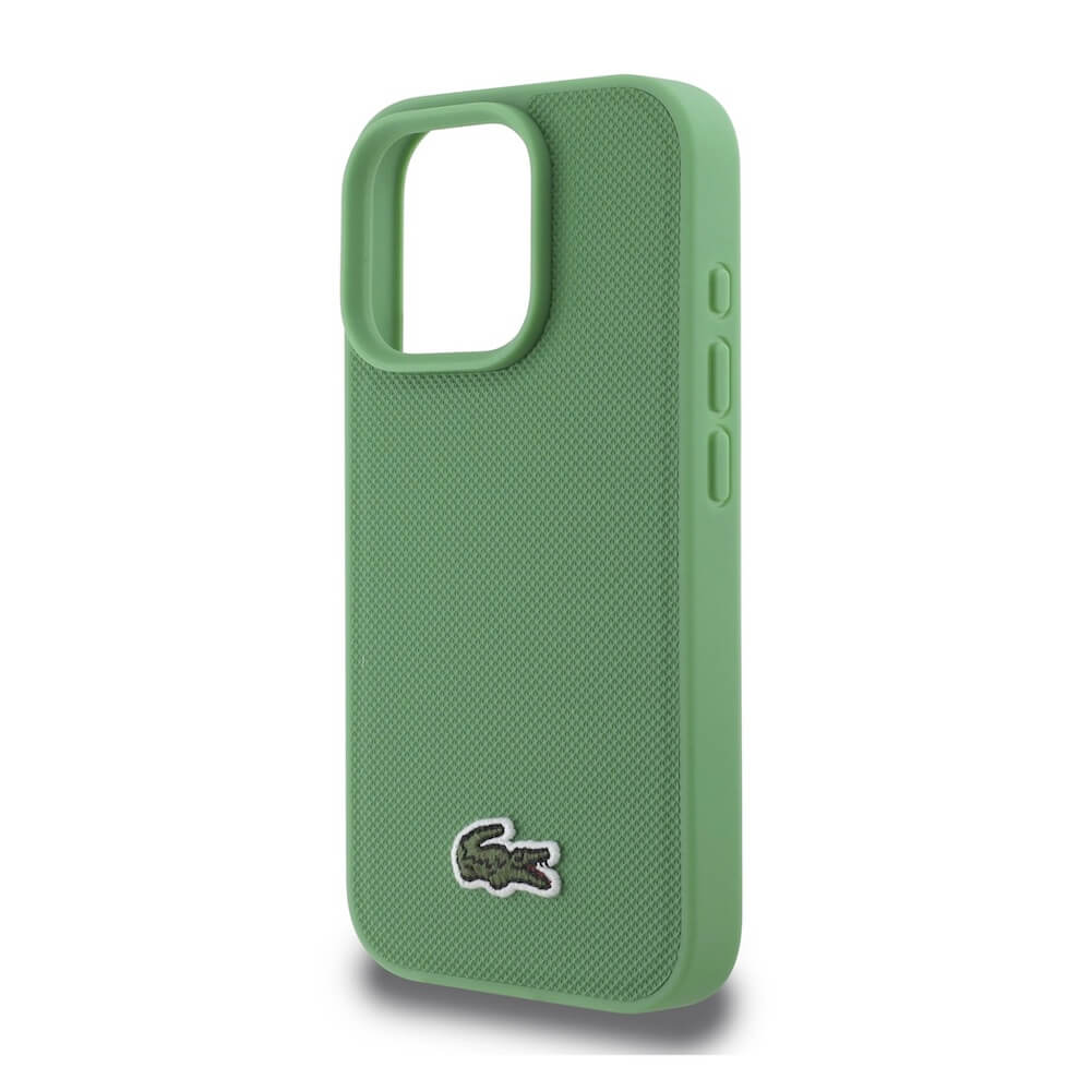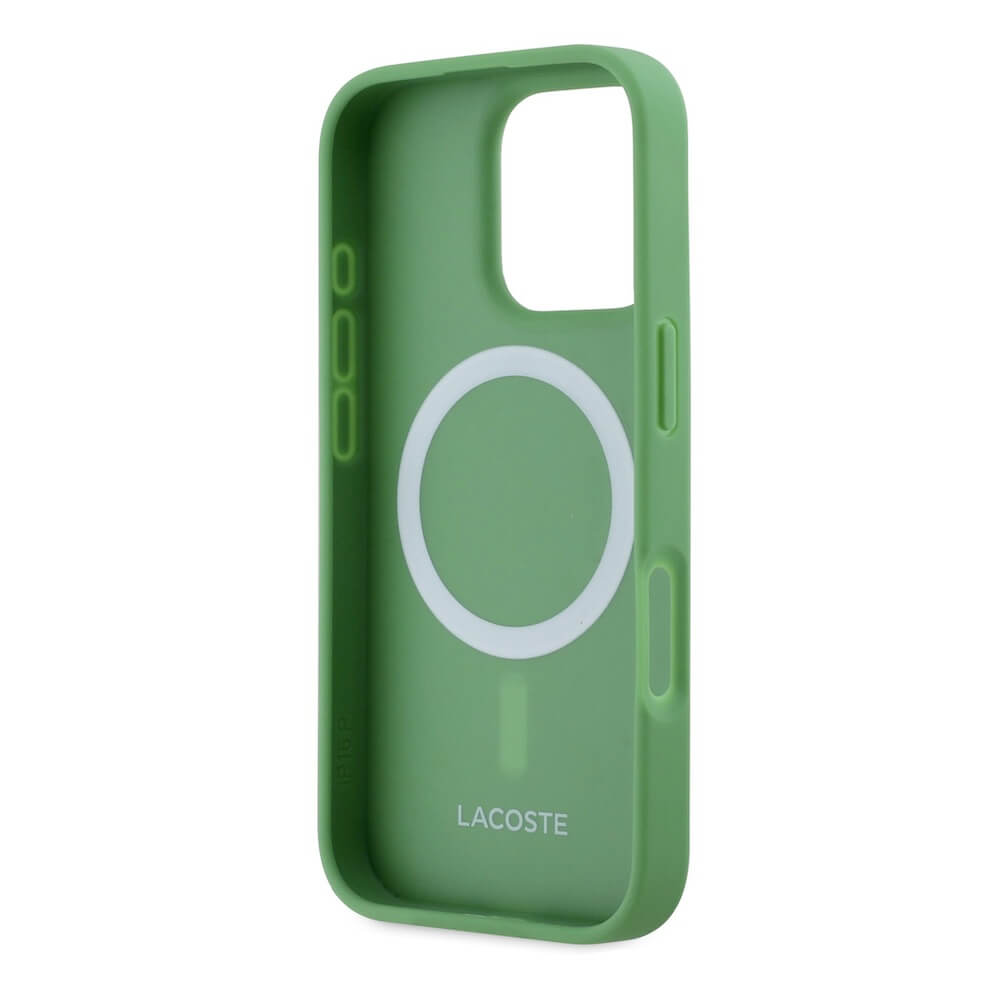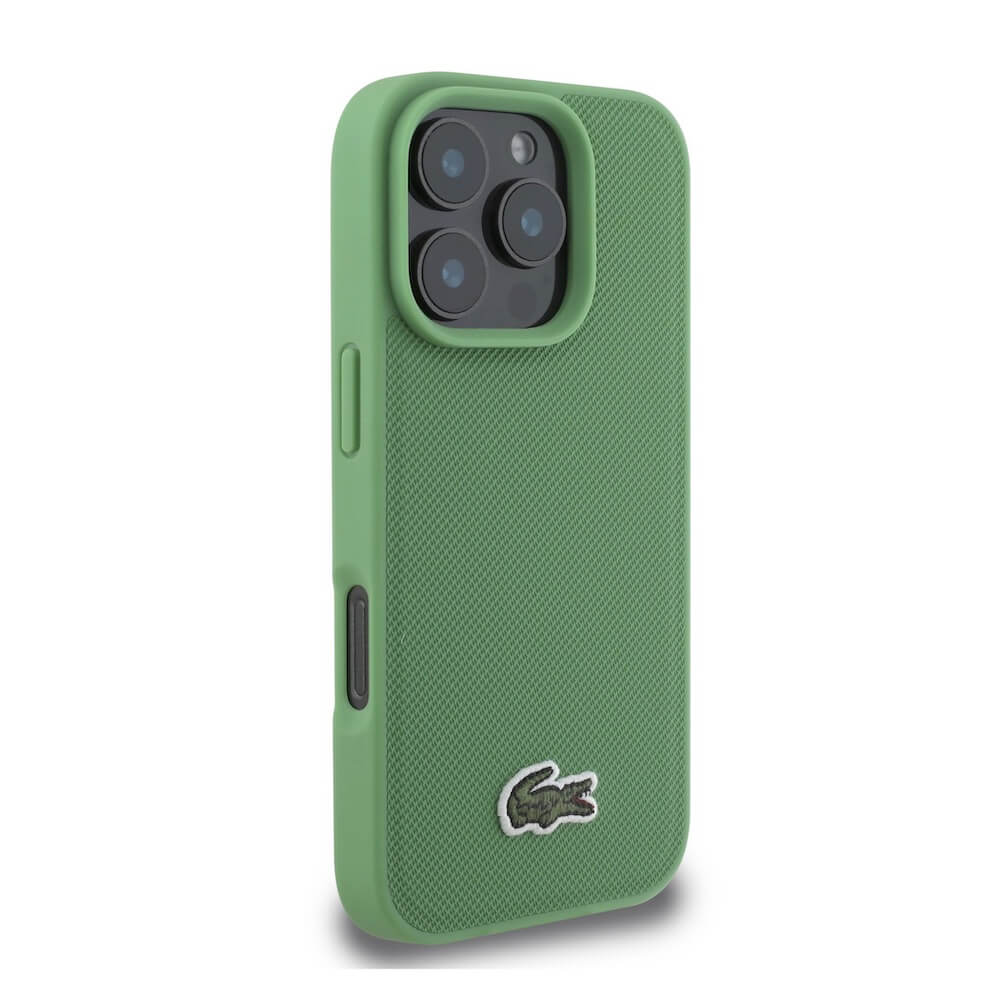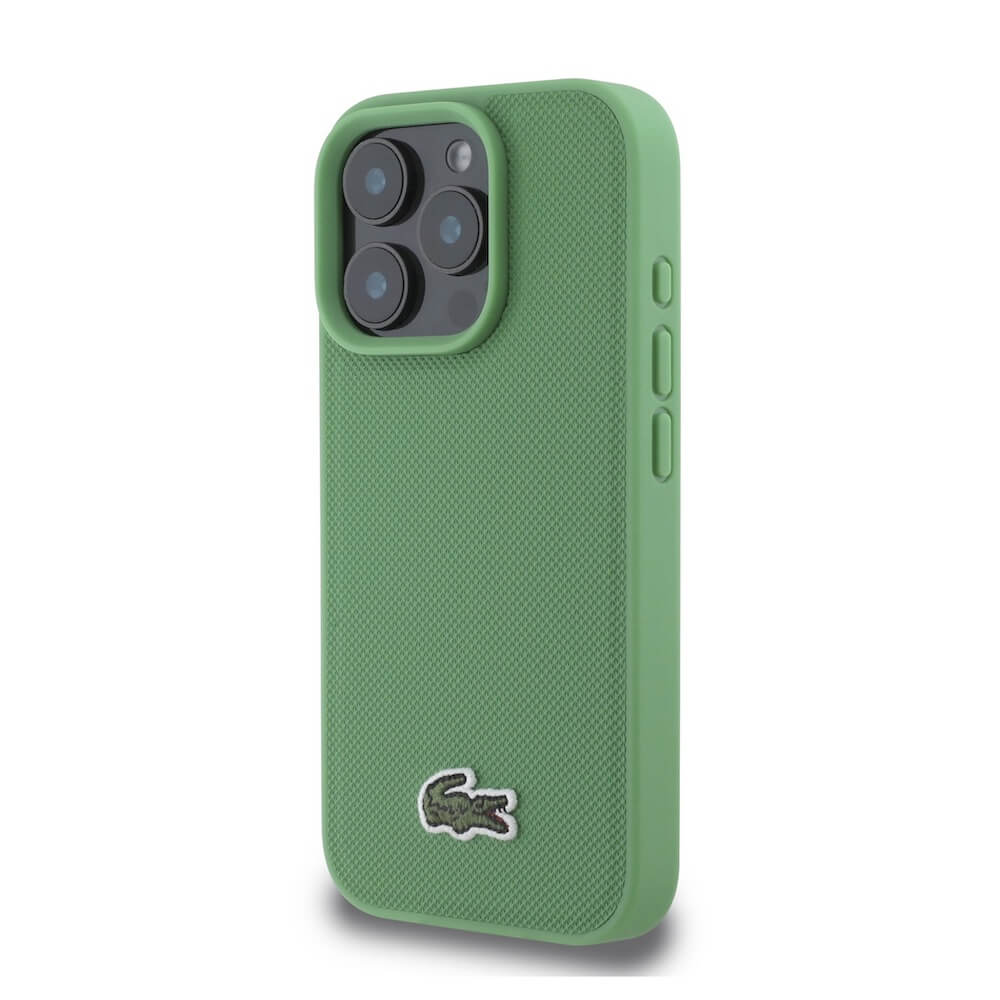 Дизайнерски кожен кейс с MagSafe за iPhone 16 Pro - Lacoste Iconic Petit Pique Woven Logo MagSafe Case (зелен)