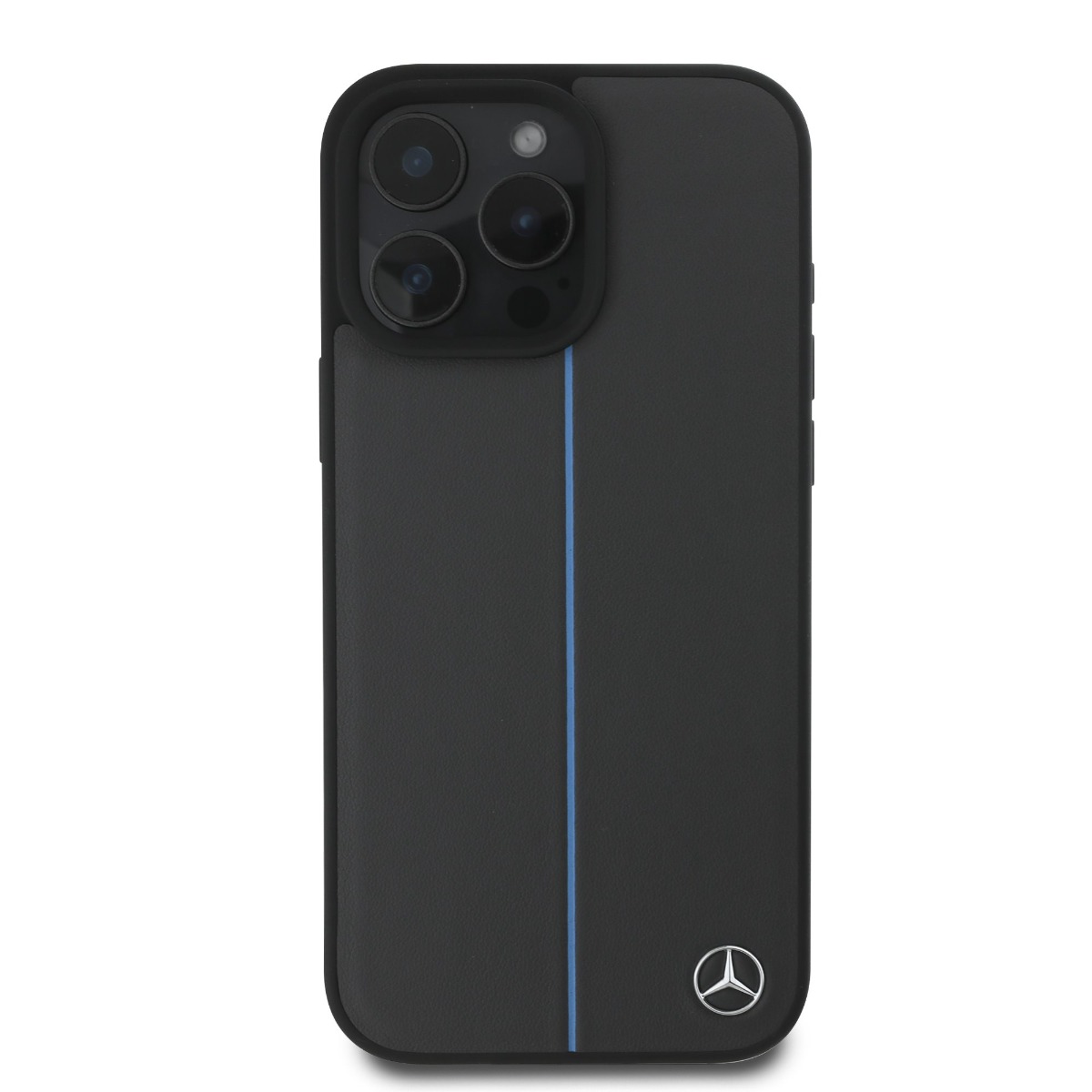 Дизайнерски кожен кейс с MagSafe за iPhone 16 Pro - Mercedes-Benz Genuine Leather Blue Stripe MagSafe Case (тъмносив)