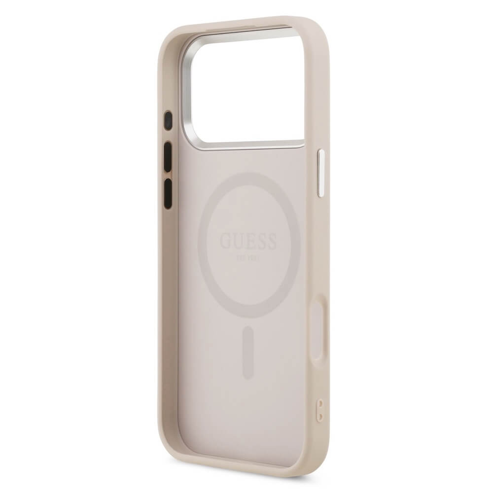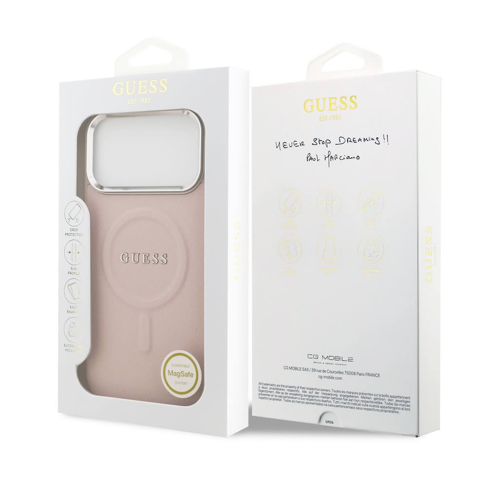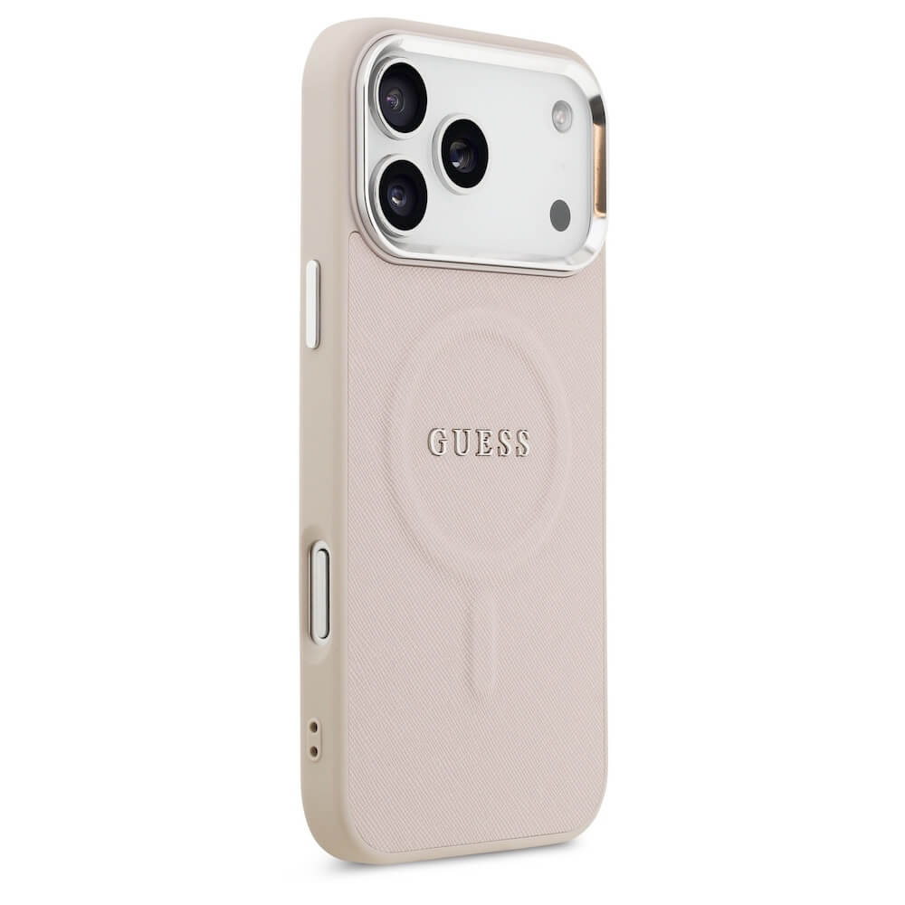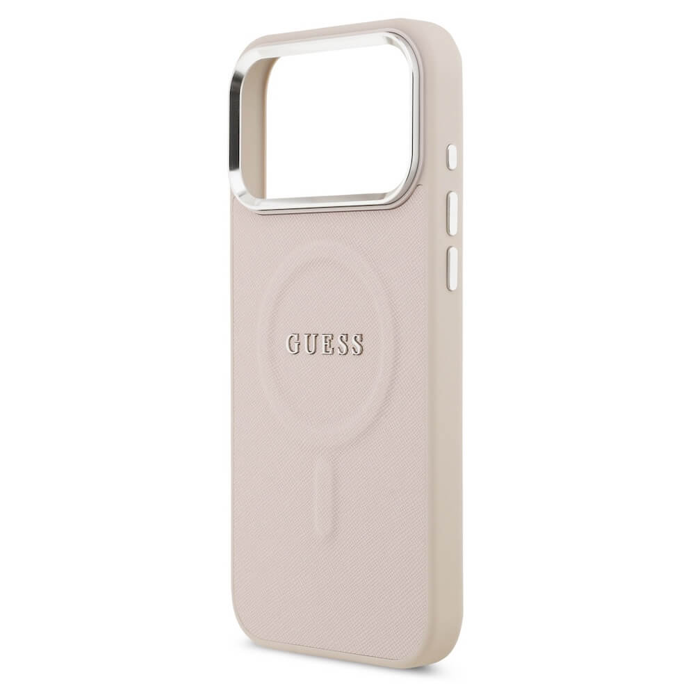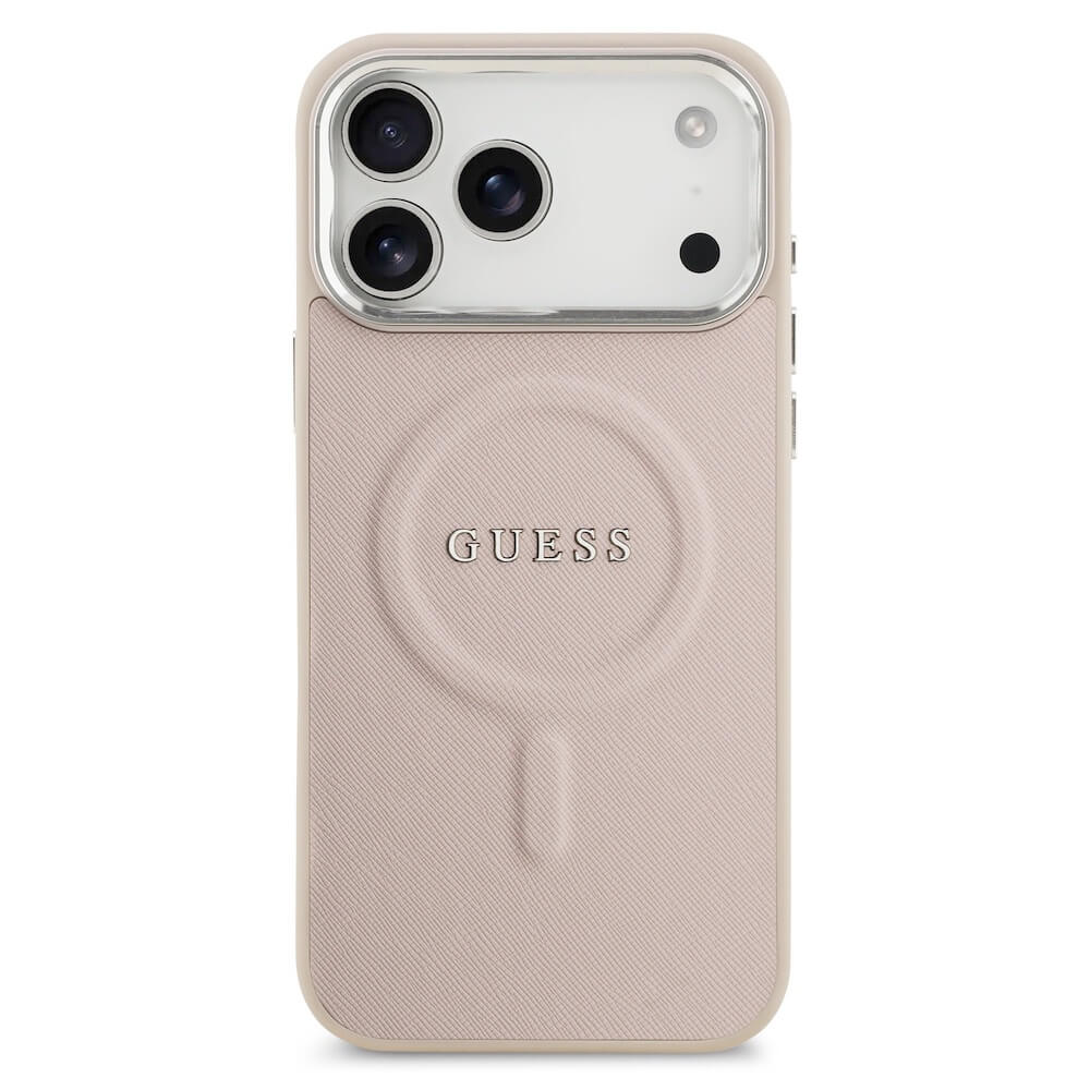 Дизайнерски кожен кейс с MagSafe за iPhone 17 Pro Max - Guess PU Saffiano MagSafe Leather Hard Case (розов)