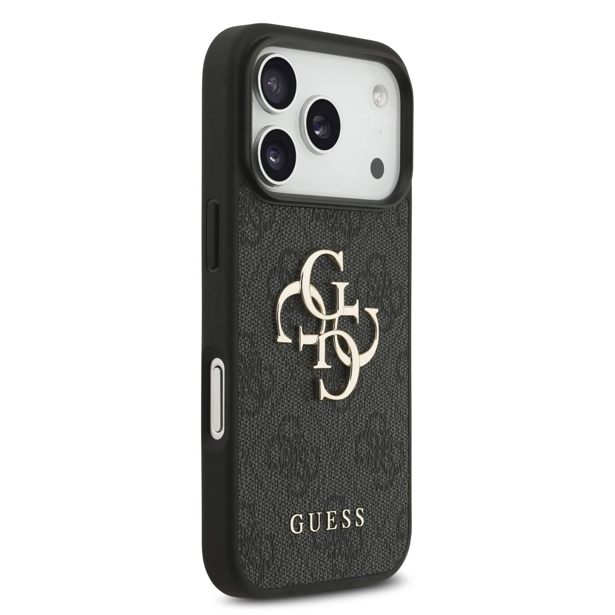 Дизайнерски кожен кейс с връзка за ръка за iPhone 17 Pro Max - Guess PU 4G Metal Logo Strap Case (черен)