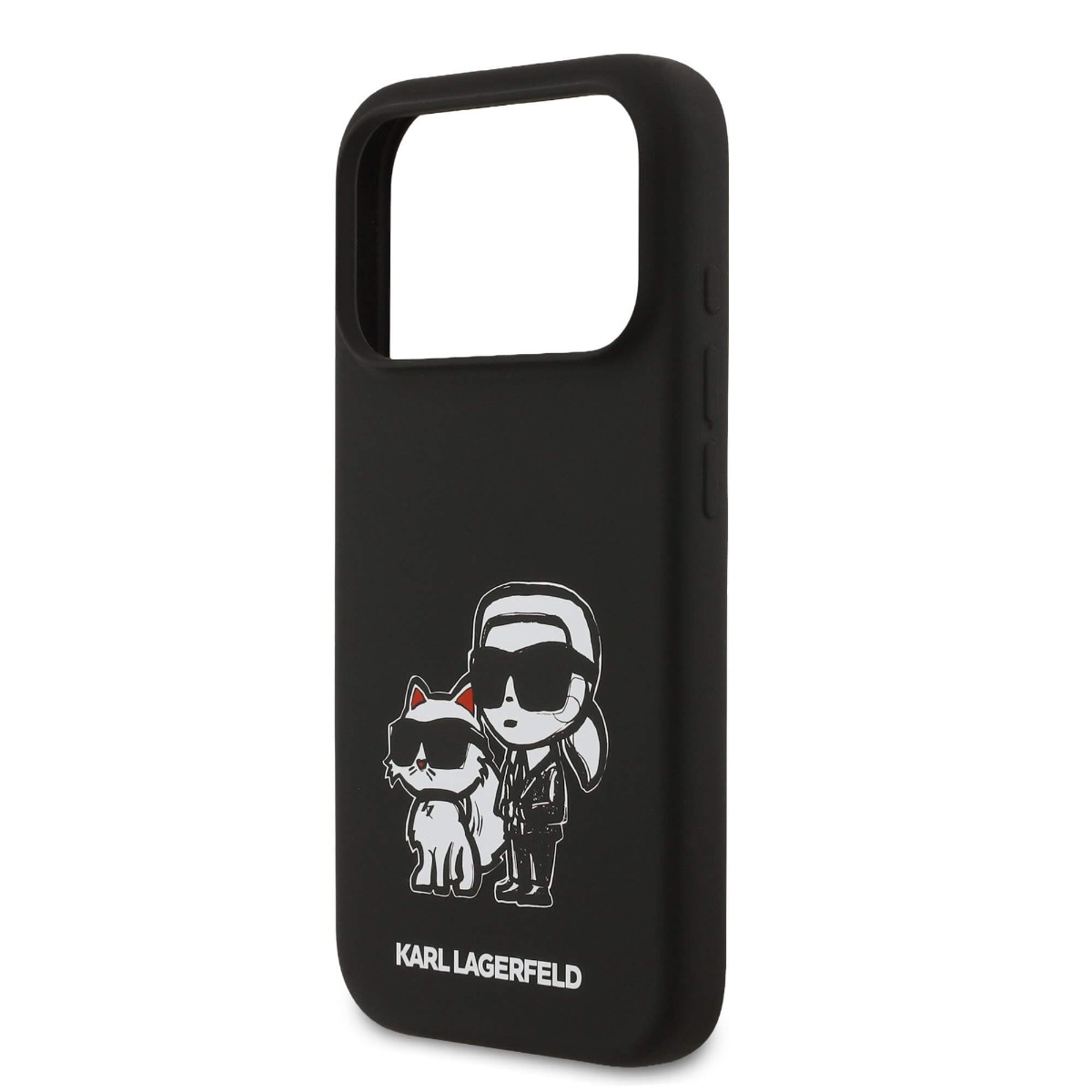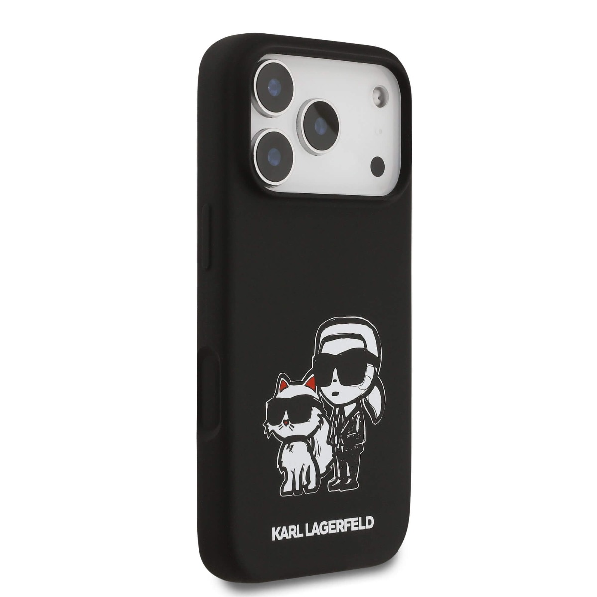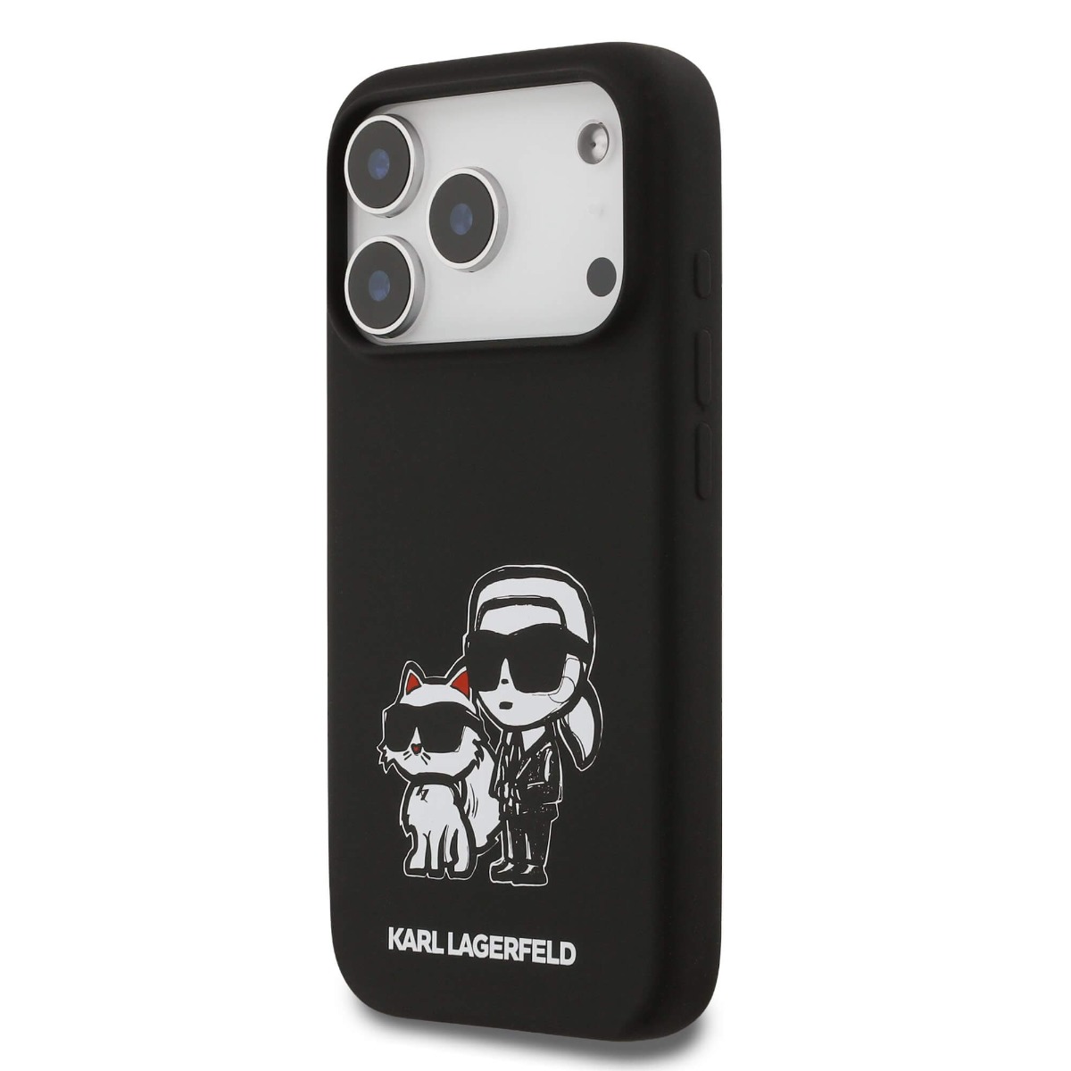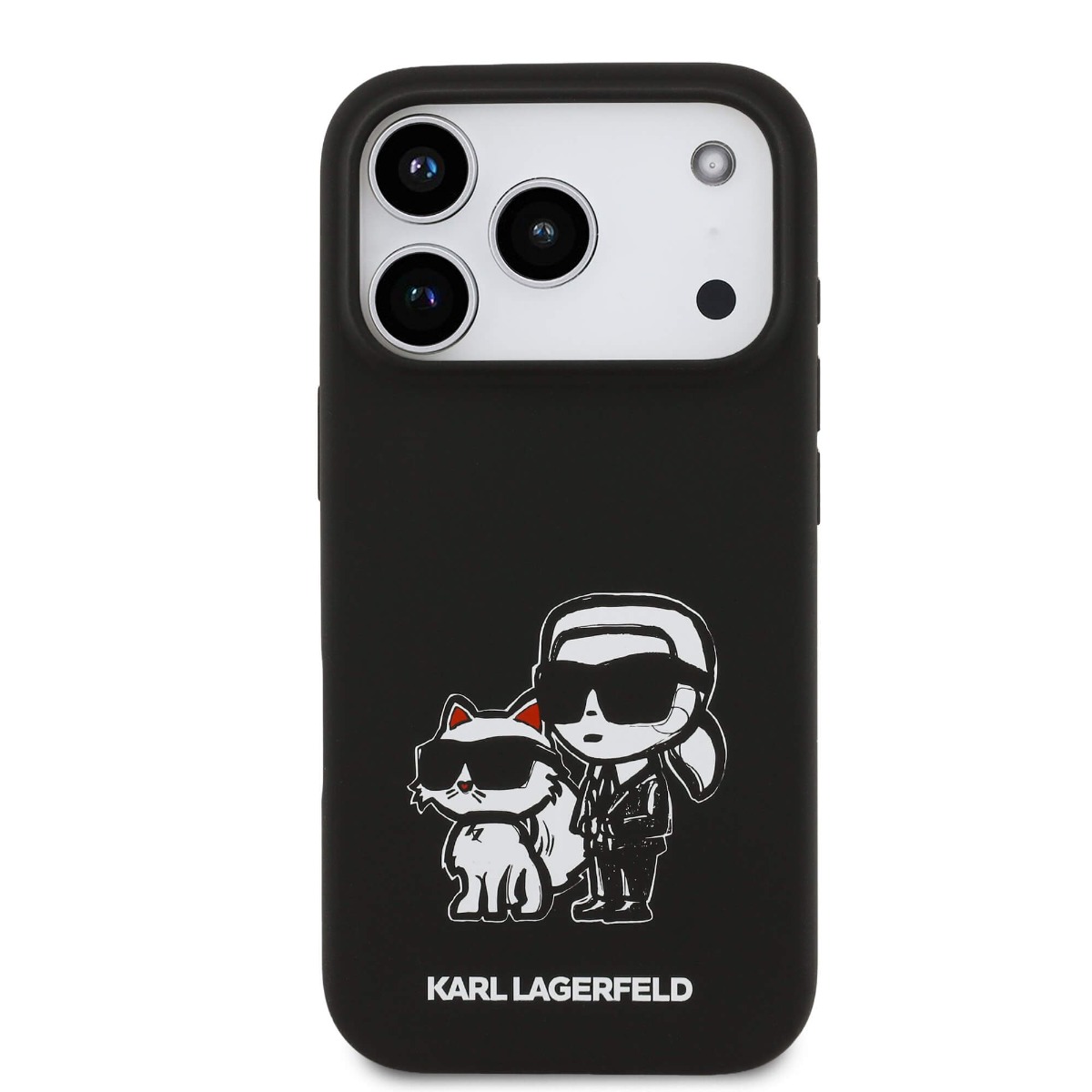 Дизайнерски силиконов кейс с MagSafe за iPhone 17 Pro - Karl Lagerfeld Liquid Silicone Sketch Karl and Choupette MagSafe Case (черен)