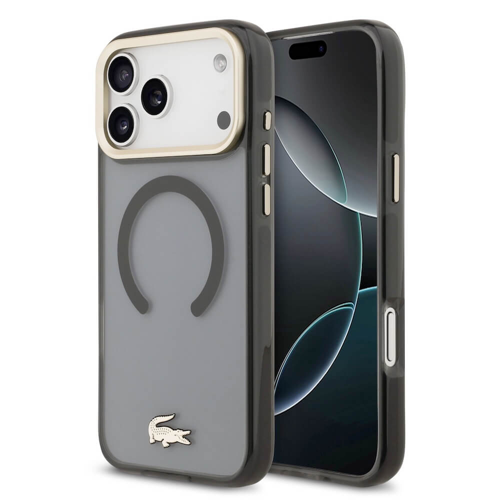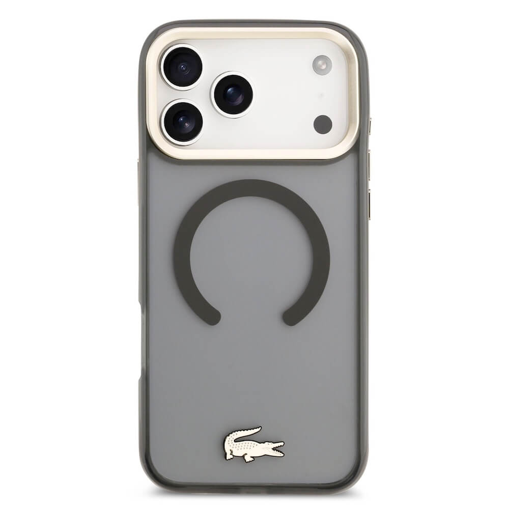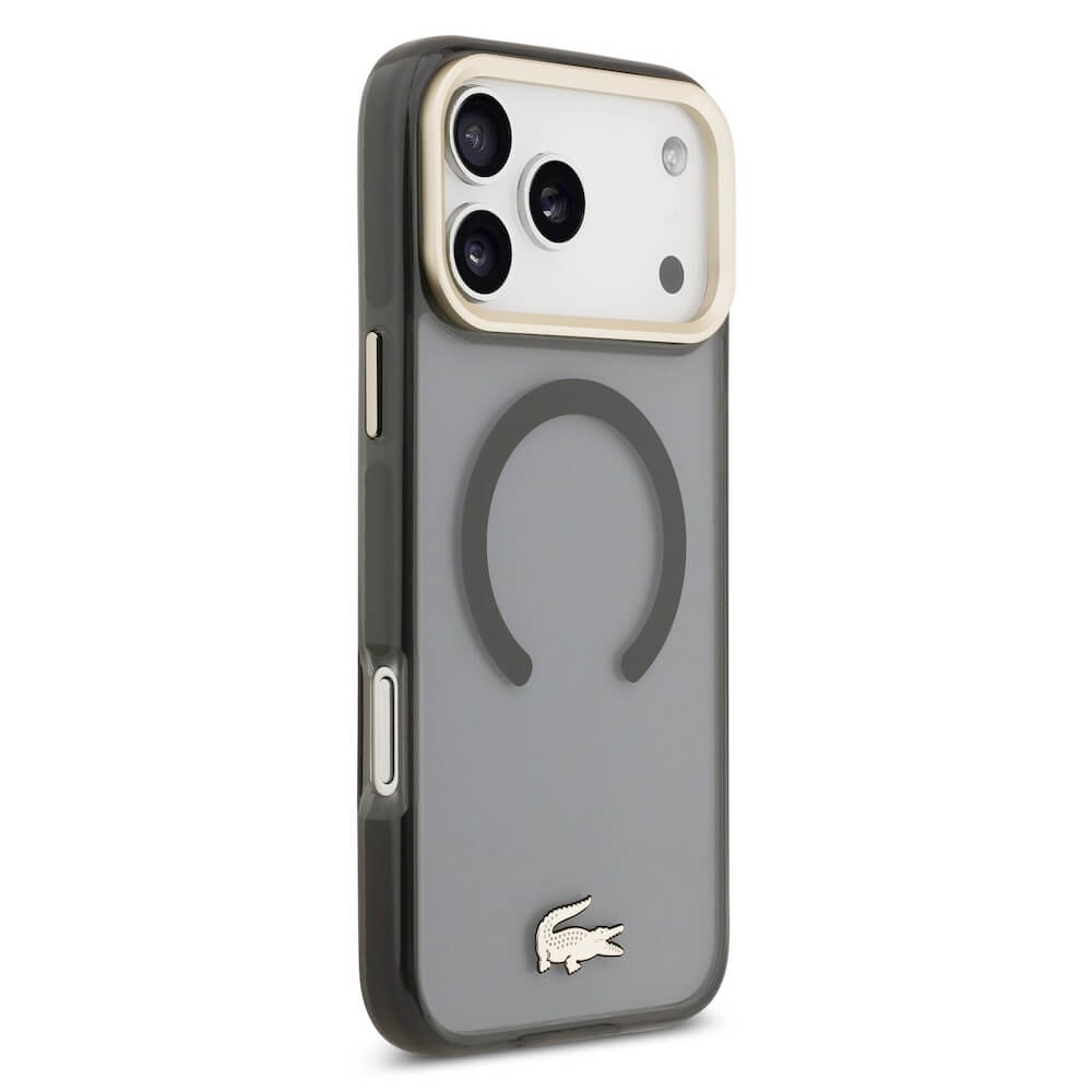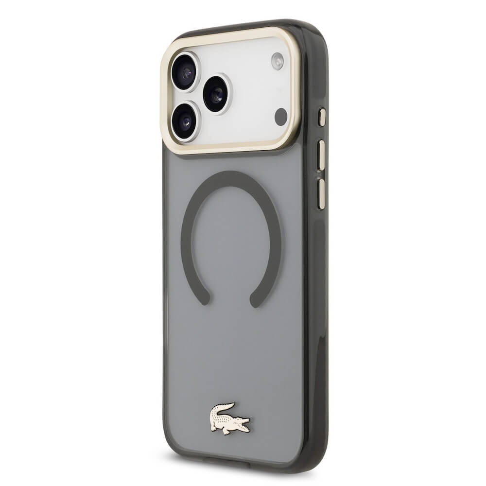 Дизайнерски xибриден кейс с висока степен на защита с MagSafe за iPhone 17 Pro Max - Lacoste Hybrid Frosted Finish Gold Logo MagSafe Case (черен-прозрачен)