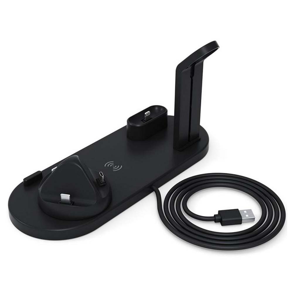 Docking Station QI Wireless Charger UD15 10W - док станция за устройства с Lightning, USB-C, MicroUSB, безжично зареждане на QI устройства, Apple Watch и Apple AirPods (черен)