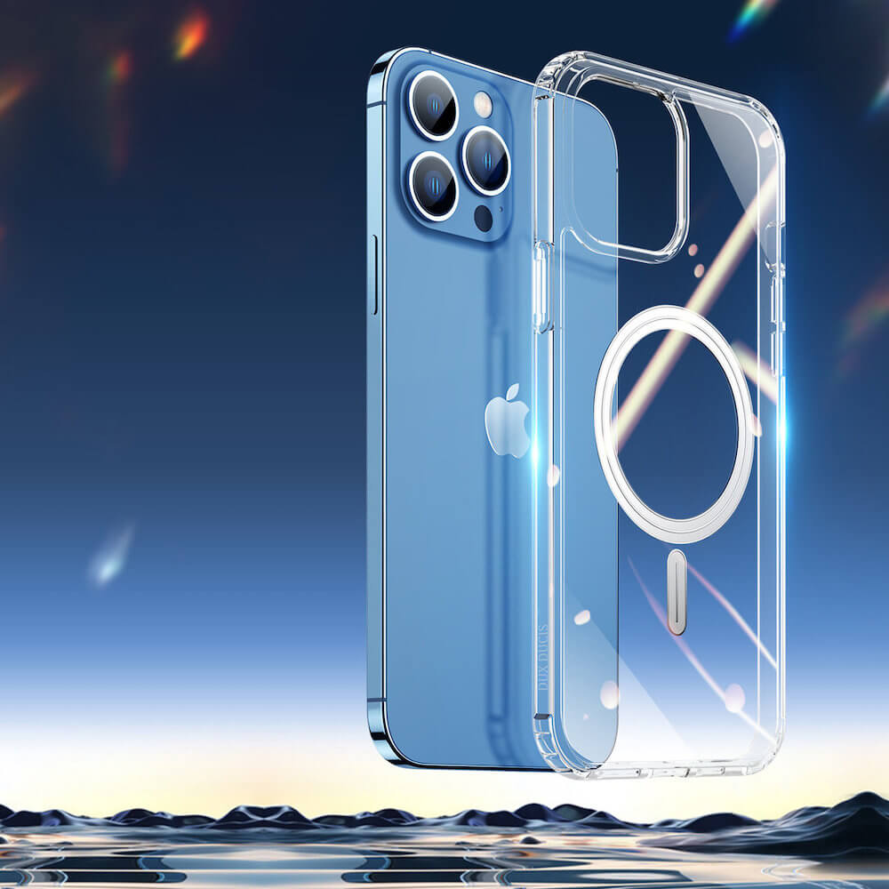 - Кейсът е снабден с магнит, благодарение на който е съвместим с MagSafe аксесоари. Това е изцяло нов стандарт за бързо и лесно свързване на аксесоари и безжични зарядни устройства