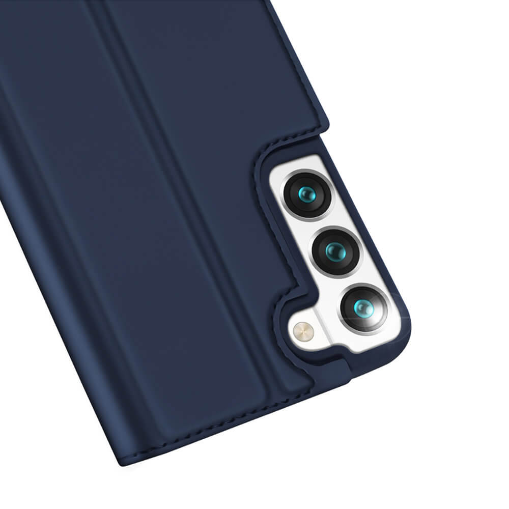 Dux Ducis Skin Pro Case - кожен калъф с поставка и отделение за кр. карти за Samsung Galaxy S22 (син)