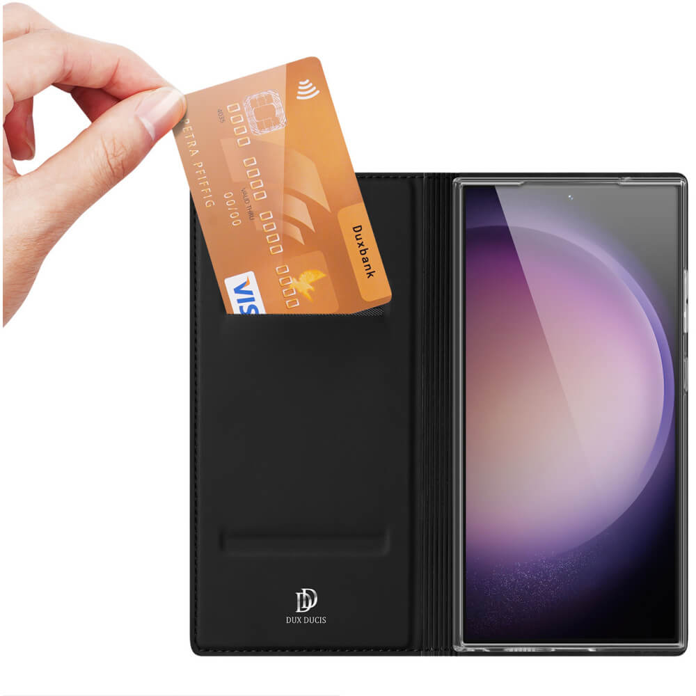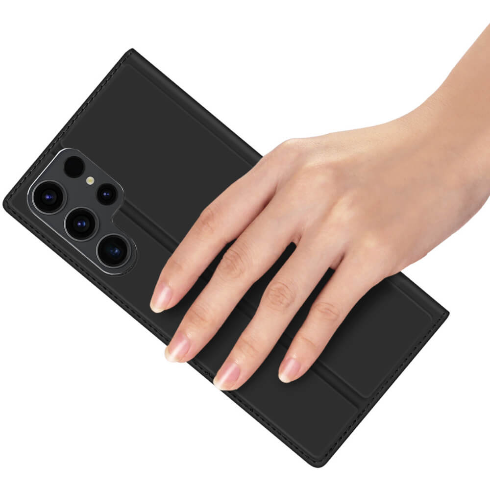 Dux Ducis Skin Pro Case - кожен калъф с поставка и отделение за кр. карти за Samsung Galaxy S24 Ultra (черен)