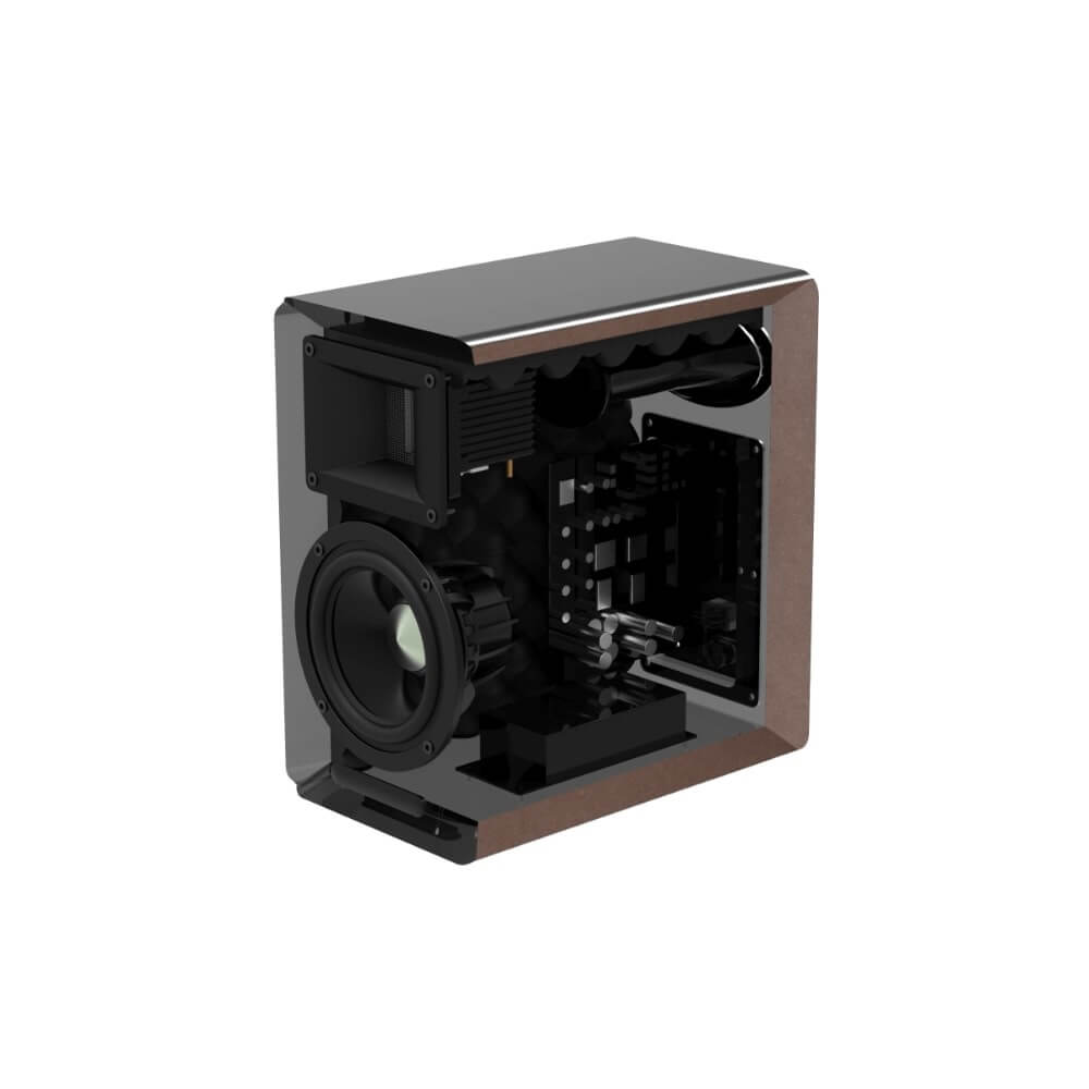 - Mid-Woofer: 5-инчов алуминиев конус Underhung Design Neo. Мощен средночестотен говорител