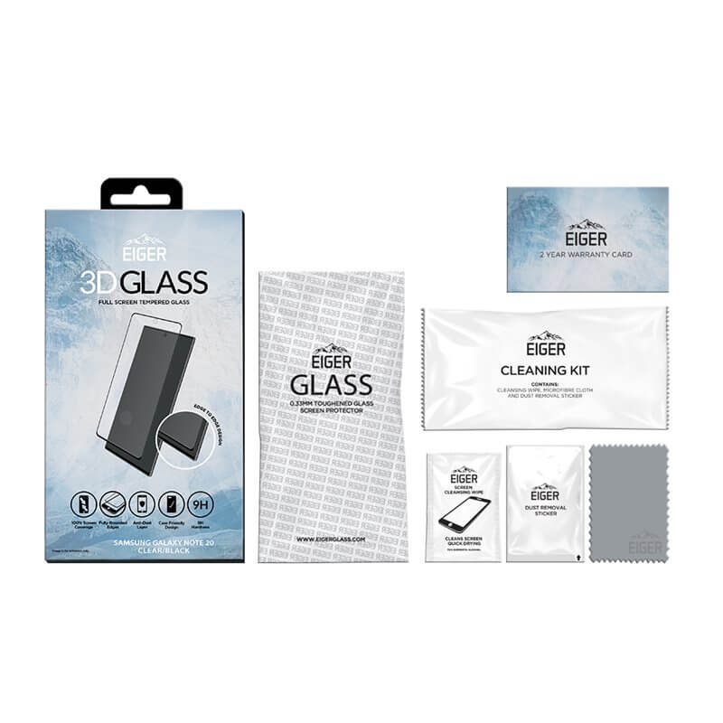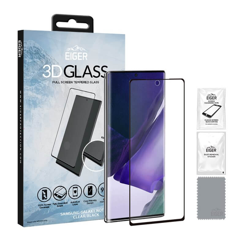 - Eiger стъклата, изработени за новият модел Samsung Galaxy Note 20 гарантират безпроблемна работа с новия, интегриран в телефона ултразвуков сензор за пръстови отпечатъци