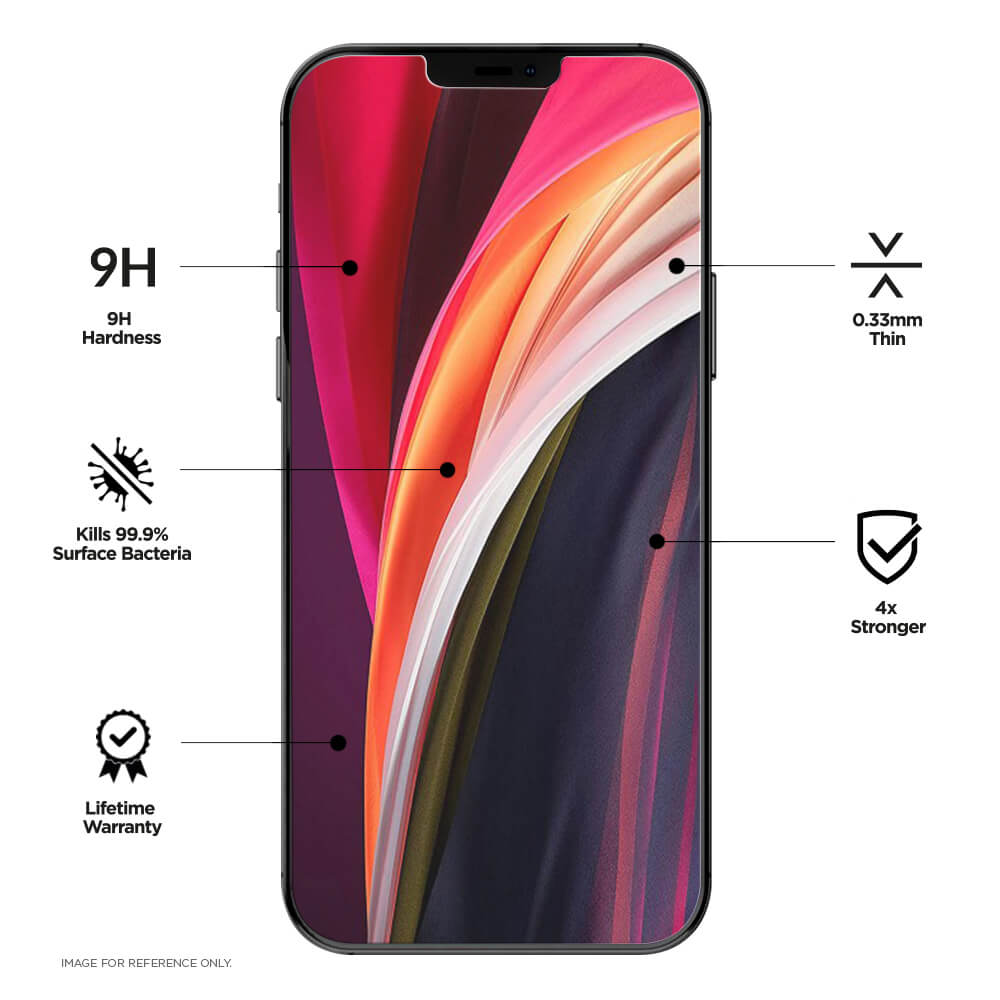 - Стъкленият протектор е с фабрично положен антибактериален слой със сребърни йони, който възпрепятства развитието на често срещани бактерии с до 99.9% успеваемост, а самият слой не се износва с времето