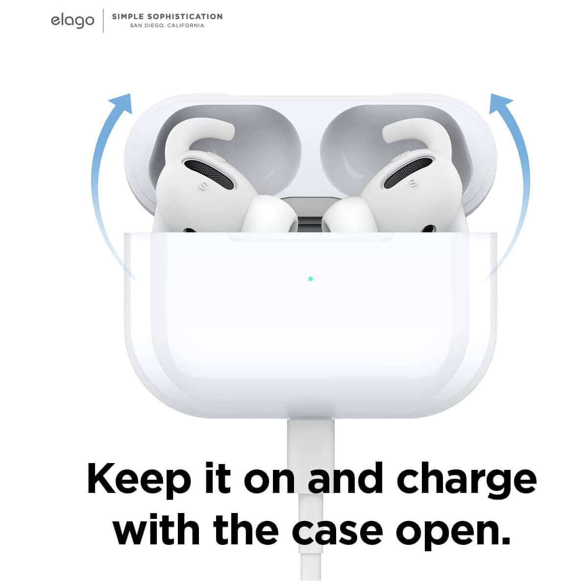 - Внимание: можете да зареждате вашите Apple Airpods Pro с поставените калъфчета, но капакът трябва да бъде отворен