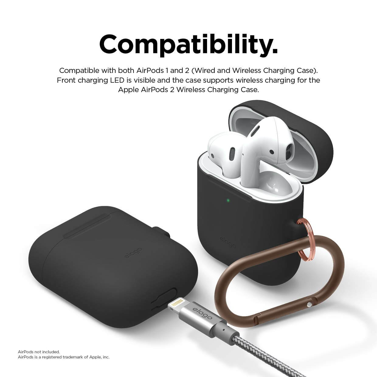- Внимание: калъфът е напълно съвместим и с Apple Airpods 1st Gen и Apple Airpods 2nd Gen с обикновен (жичен) кейс за зареждане, с тази особеност, че при тях LED индикаторът е вътре, под капачето на кейса за зареждане, а не е изнесен отвън, както е при кейса за безжично зареждане