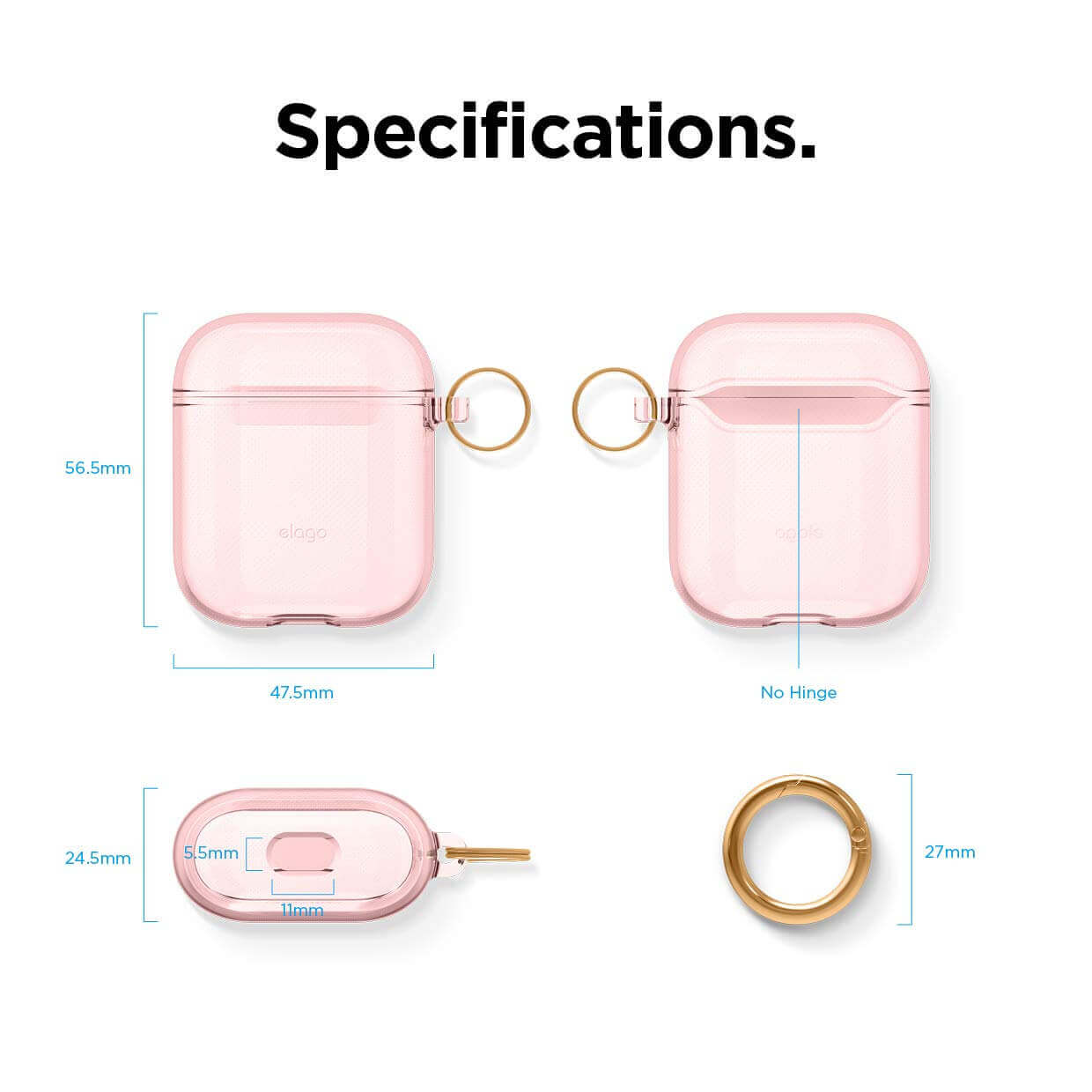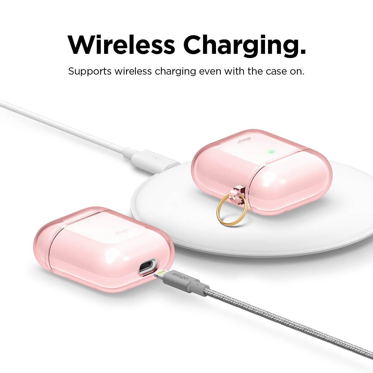 Elago Airpods TPU Hang Case - силиконов (TPU) калъф с карабинер за Apple Airpods и Apple Airpods 2 (светлорозов)