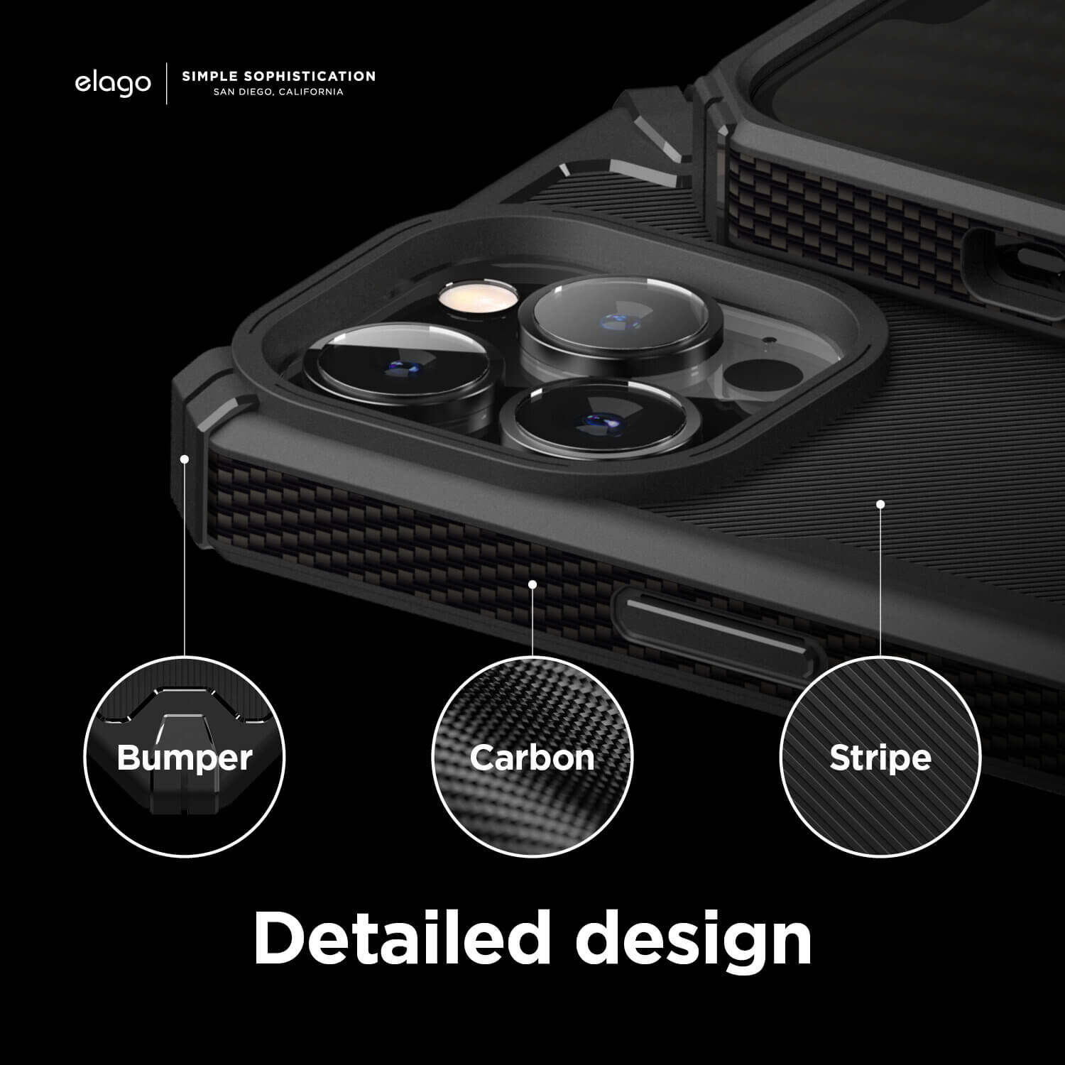 - Елегантните карбонови елементи по периферията придават завършен вид на кейса