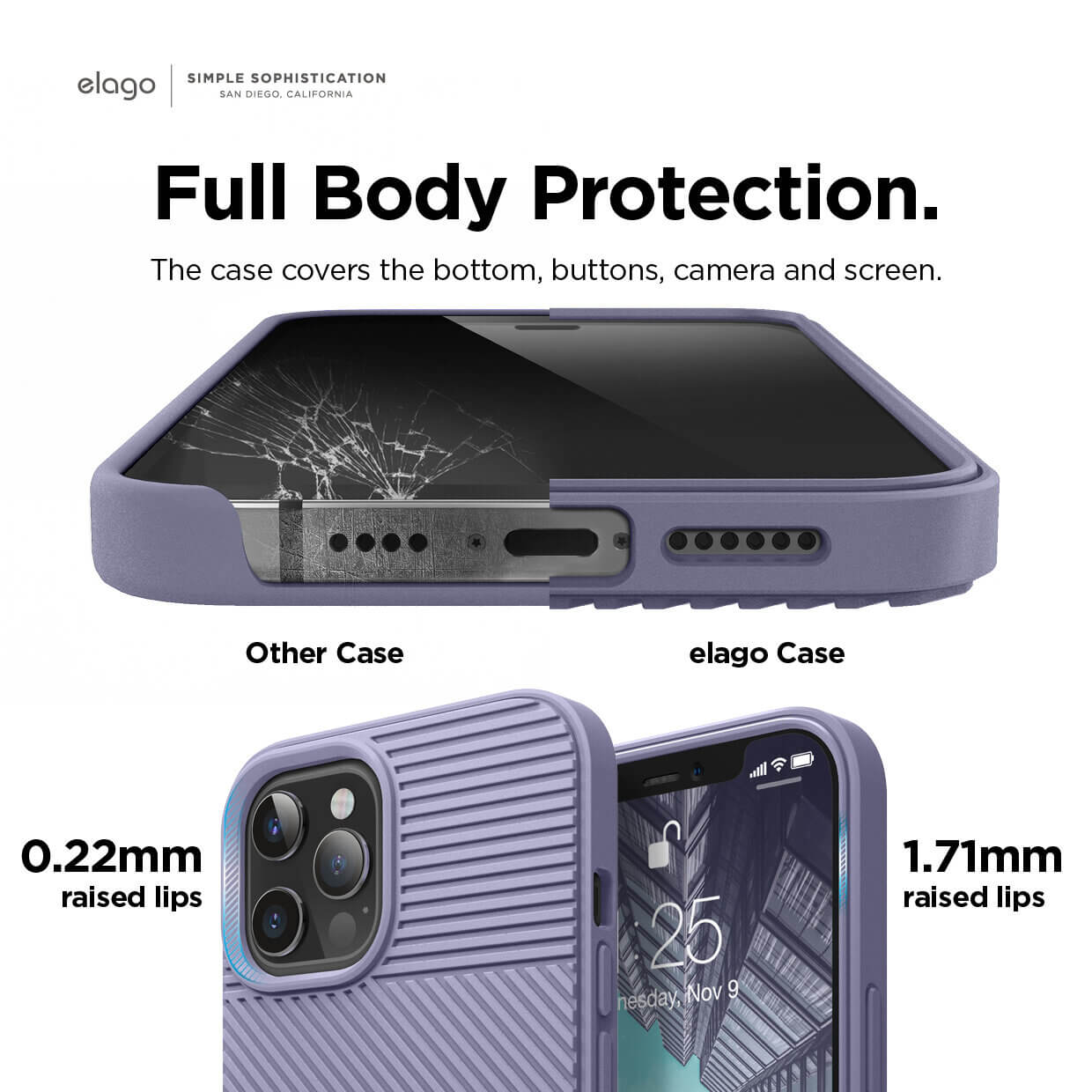 - Калъфът изпъква над камерата с 2.2 мм, което е напълно достатъчно за да оставяте безопасно телефона си по гръб и с 1.70 мм над дисплея, което пък ви позволява да го оставяте и по екран, без да се притеснявате, че повърхността ще има пряк допир с вашия телефон