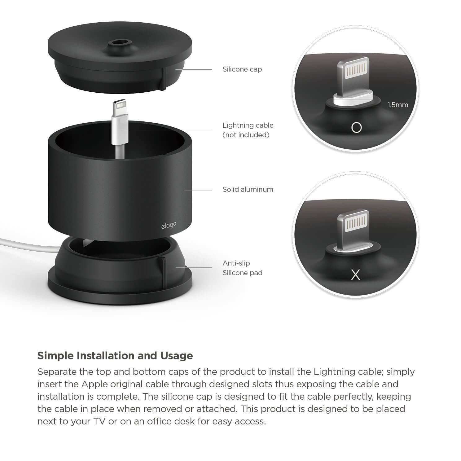 § Внимание: поставката е създадена специално и само за оригиналния Apple Lightning USB кабел, т.е. други кабели не са съвместими с нея