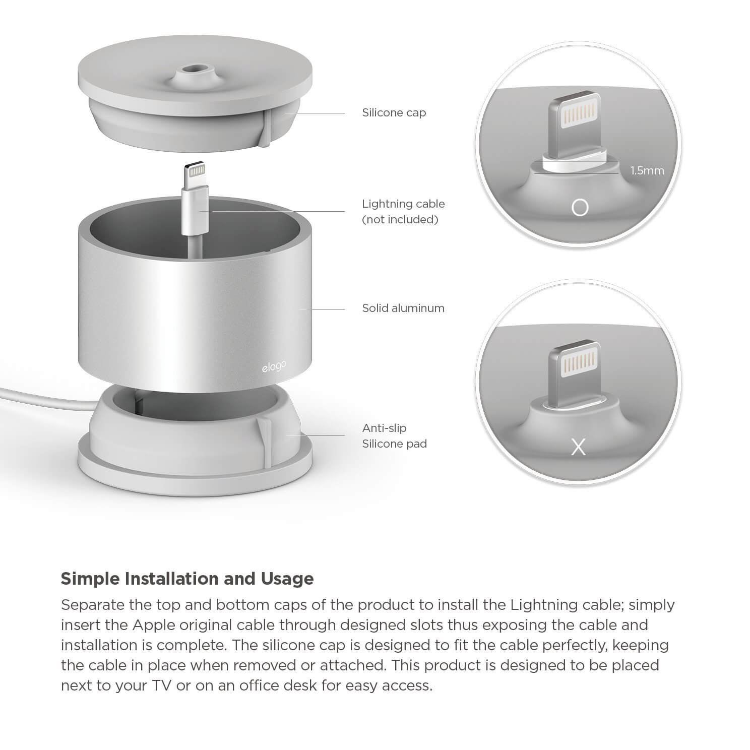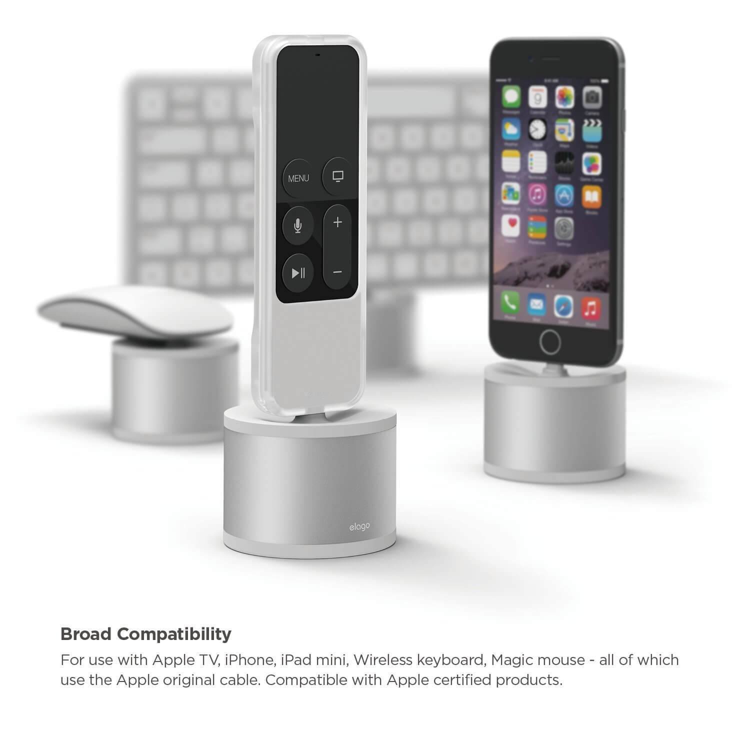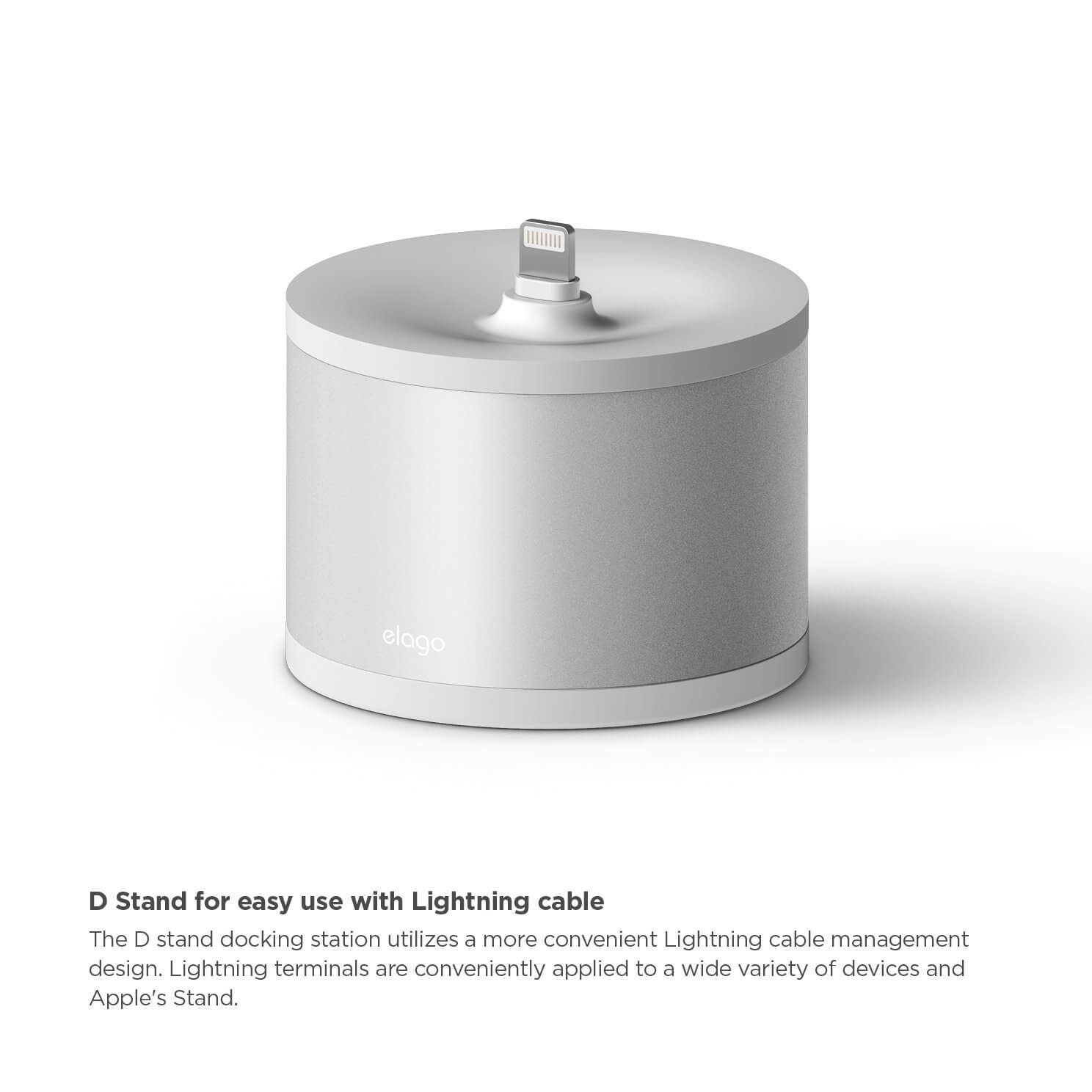 Elago D Stand Lightning Charging Station - док станция за iPhone, iPad mini, Siri Remote, Magic Mouse и AirPods (сребриста)