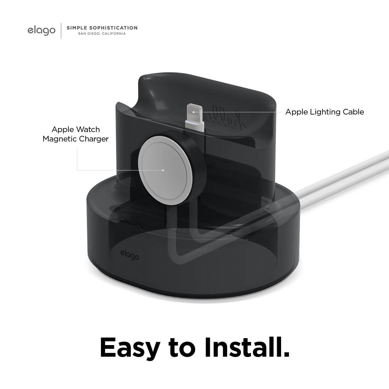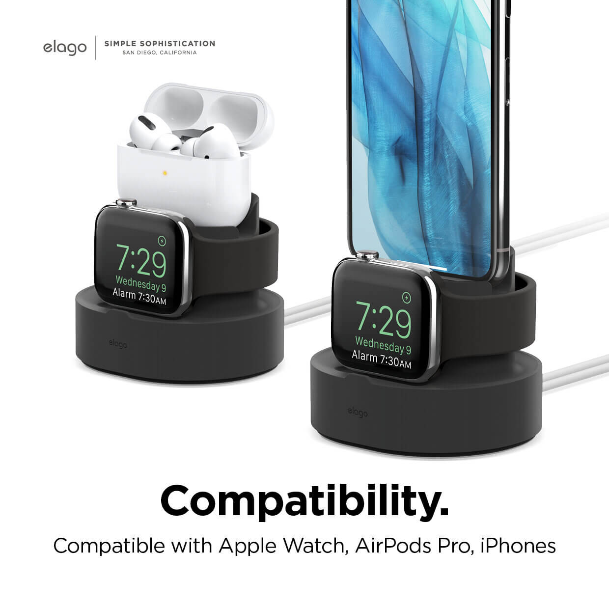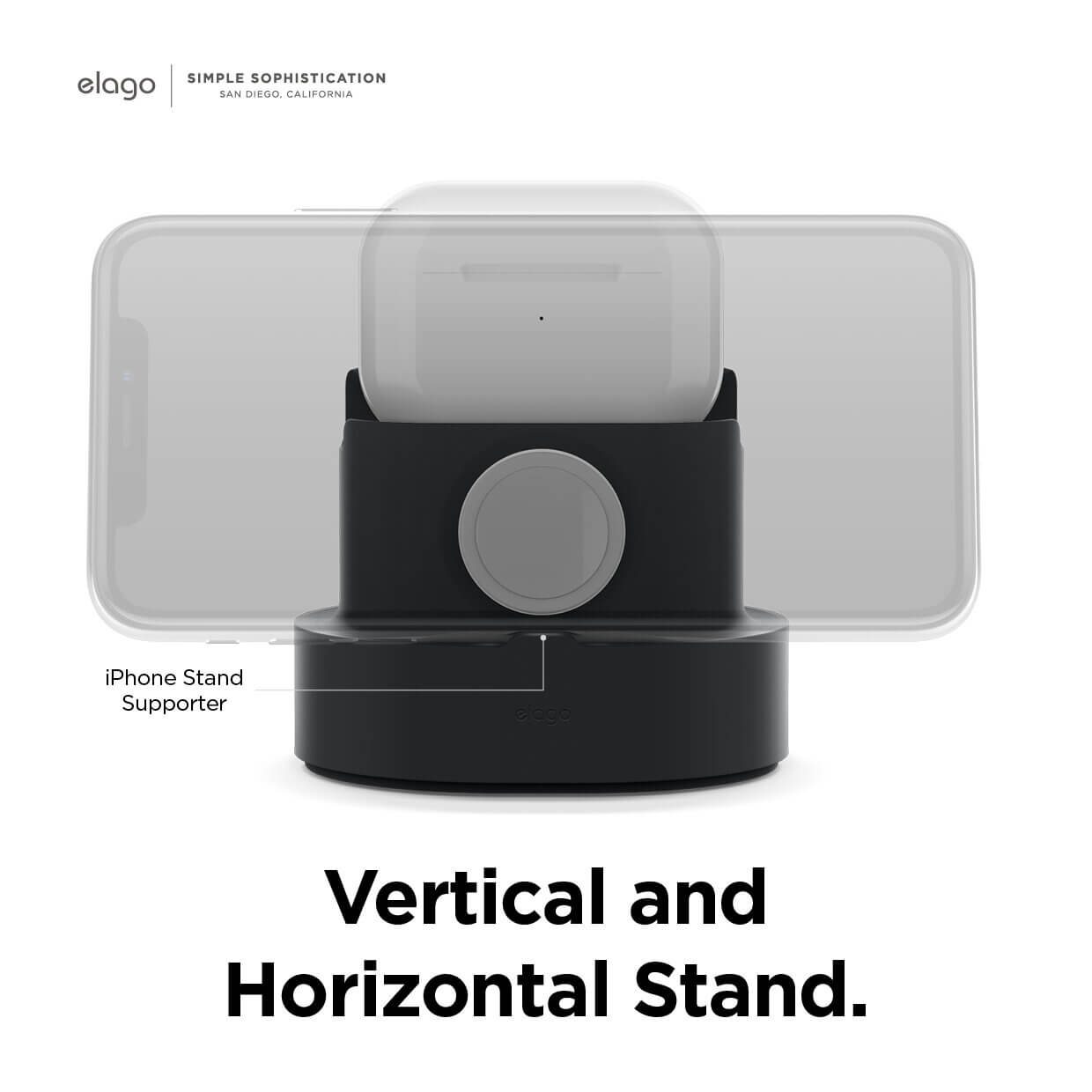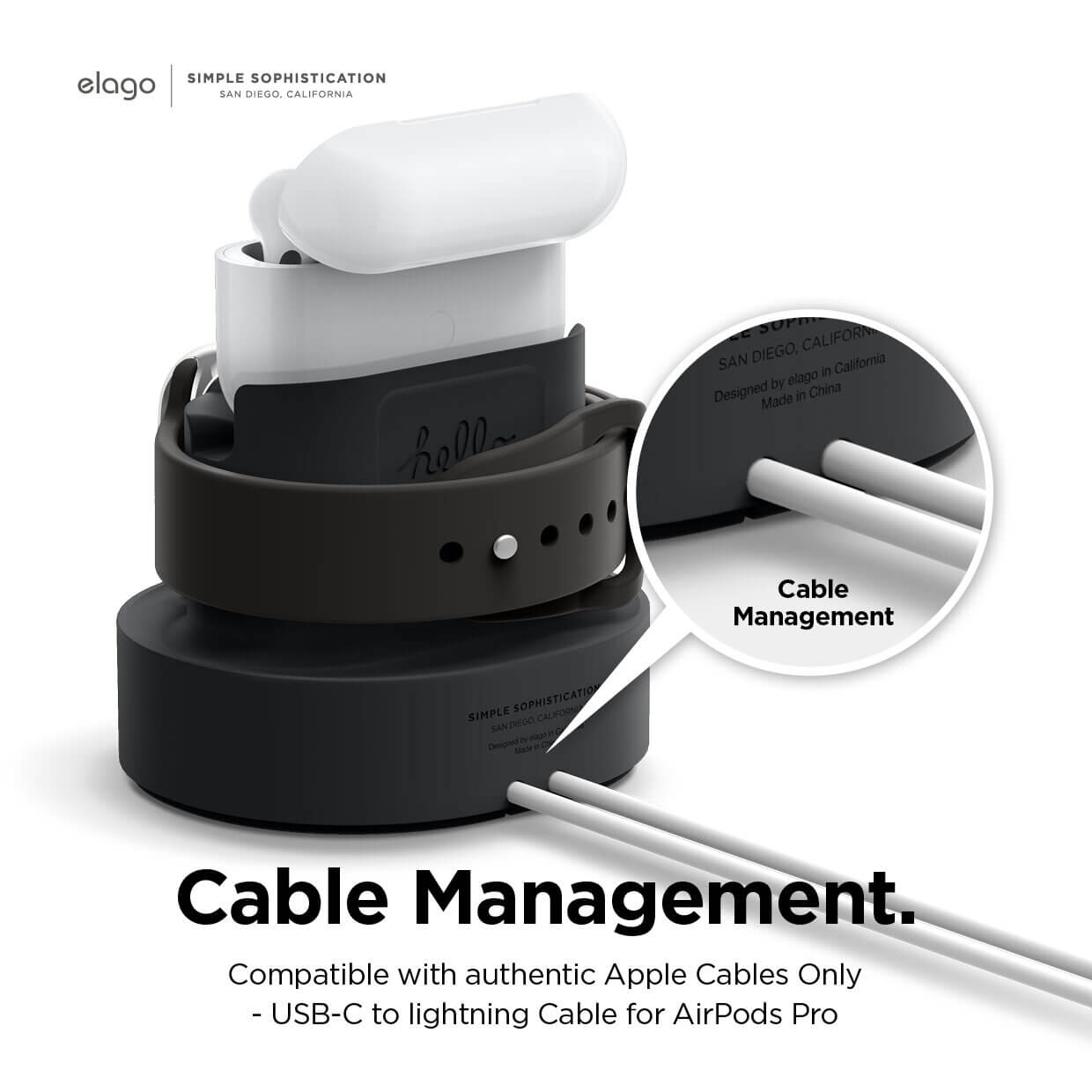 Elago Duo Charging Hub Pro - силиконова поставка за зареждане на iPhone, Apple Watch и Apple AirPods Pro (черна)