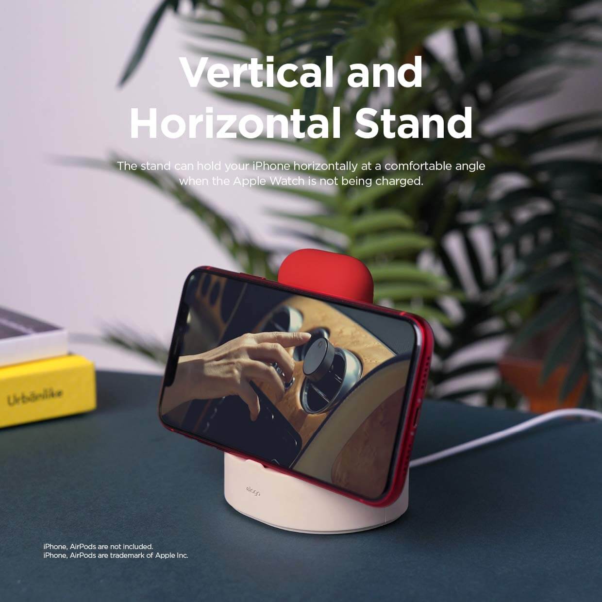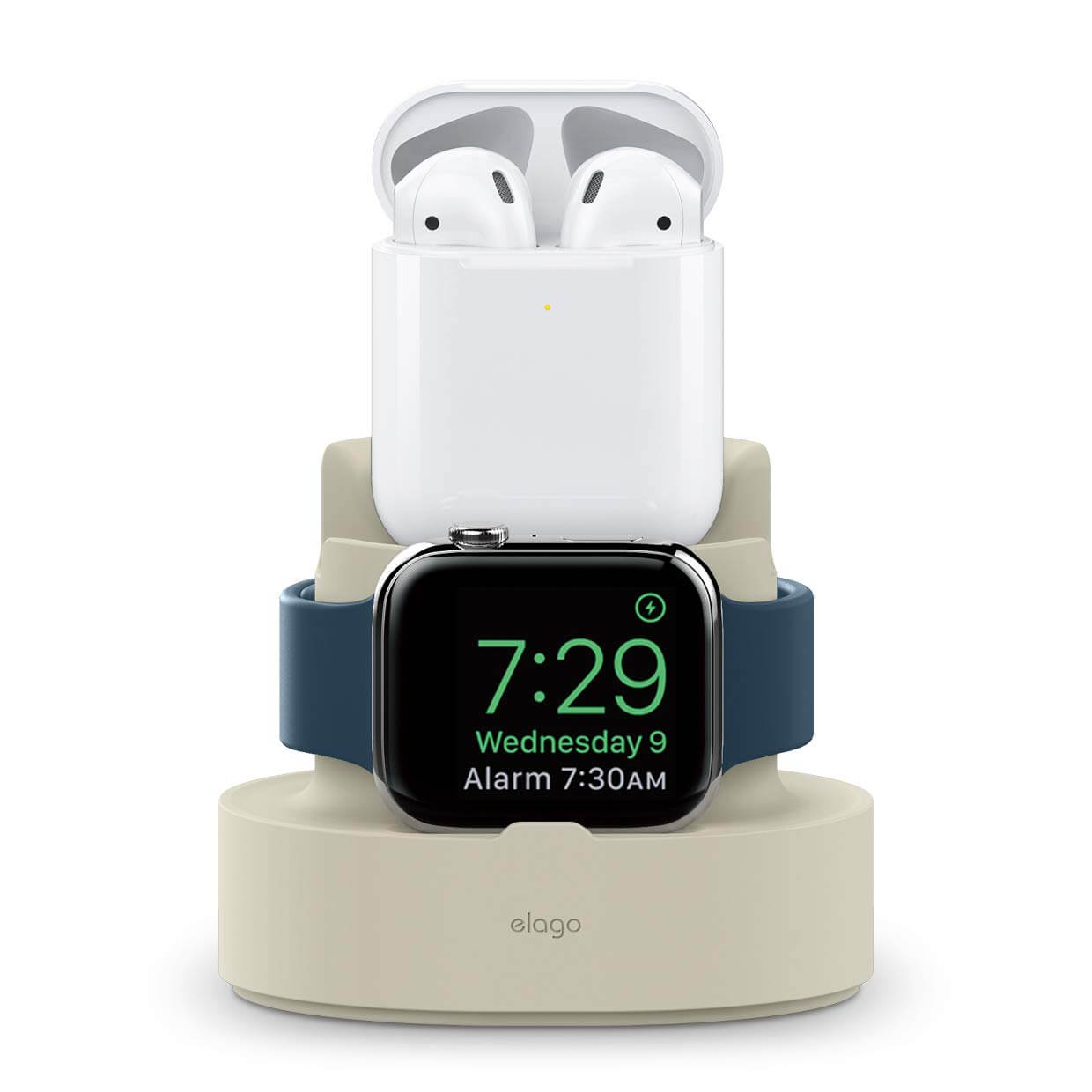 Elago Duo Charging Hub - силиконова поставка за зареждане на iPhone, Apple Watch и Apple AirPods (бяла)