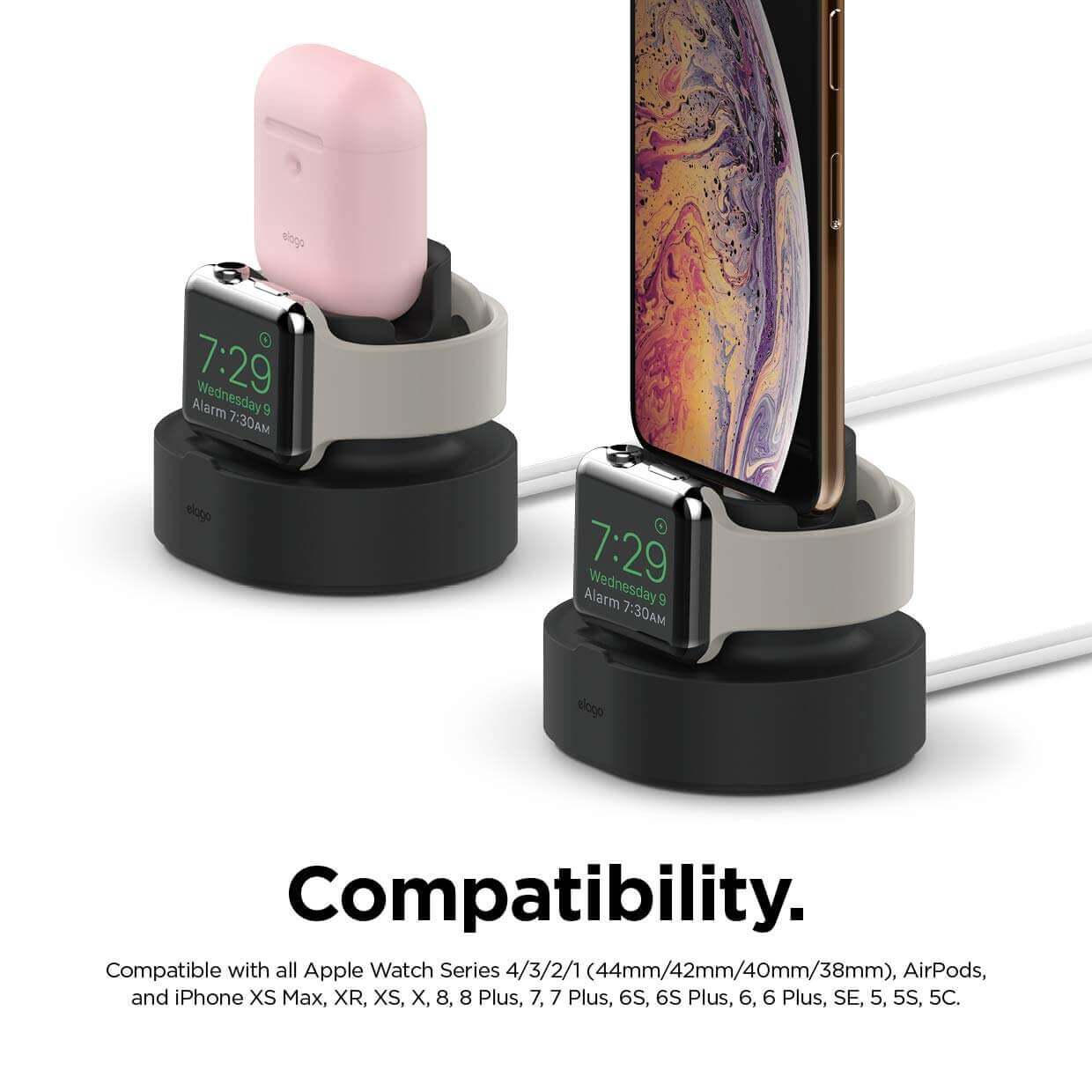 Elago Duo Charging Hub - силиконова поставка за зареждане на iPhone, Apple Watch и Apple AirPods (черна)