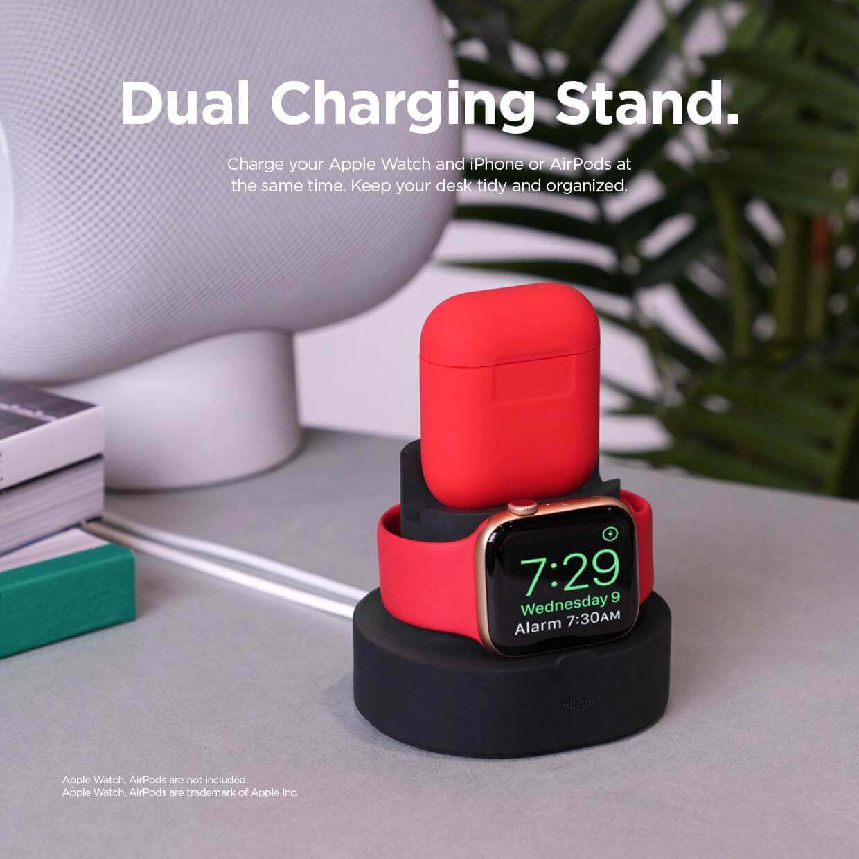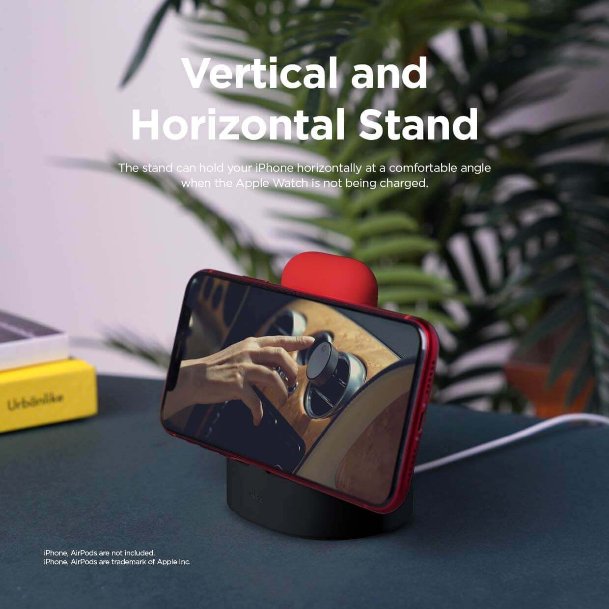 - Възможност за поставяне и зареждане на Apple iPhone или Apple AirPods и Apple Watch