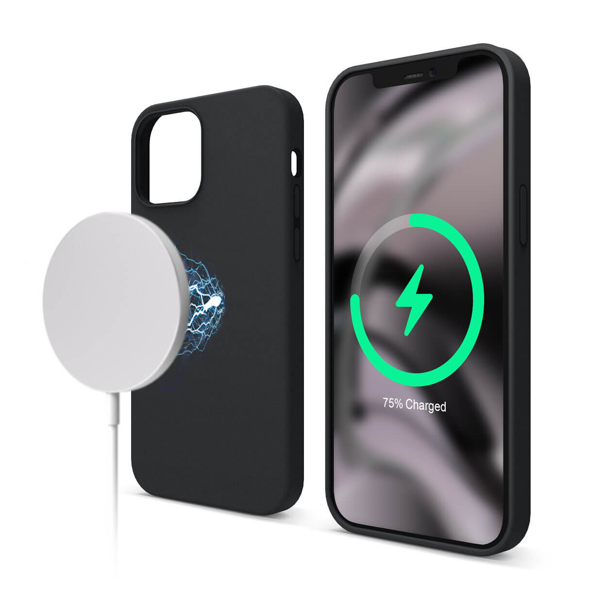 Elago MagSafe Soft Silicone Case - силиконов (TPU) калъф с вграден магнитен конектор (MagSafe) за iPhone 12, iPhone 12 Pro (черен)