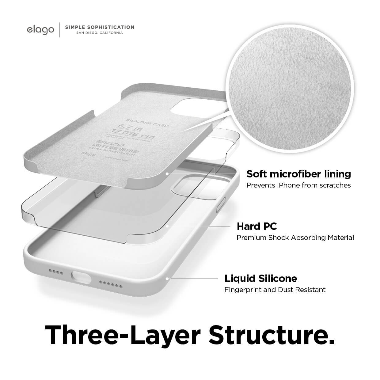- Трислойна структура - мек силикон, твърд поликарбонат и мек микрофибър