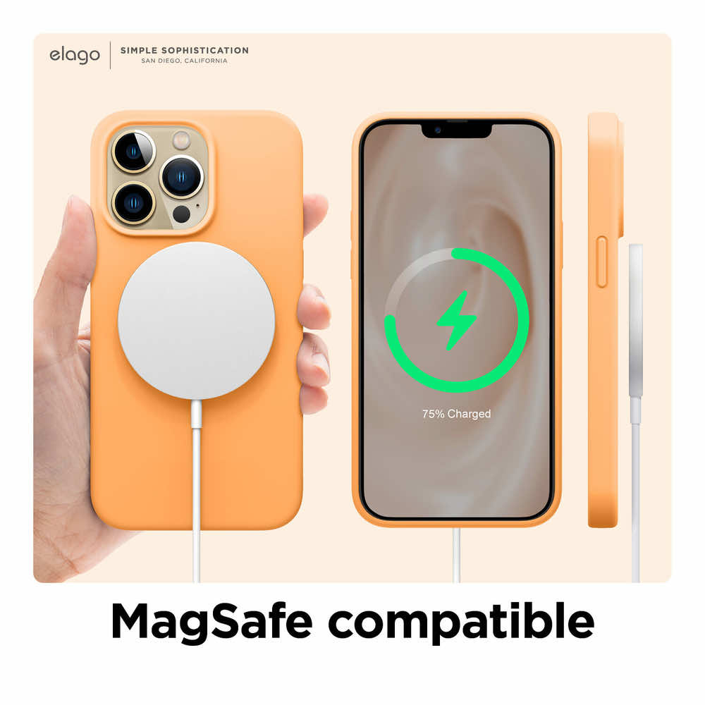 - Възможност за безжично зареждане на телефона с Apple MagSafe Charger, докато е в калъфа