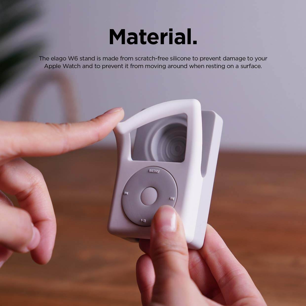 Elago W6 Watch Stand - силиконова винтидж поставка в стила на Apple iPod Classic за Apple Watch (бяла)