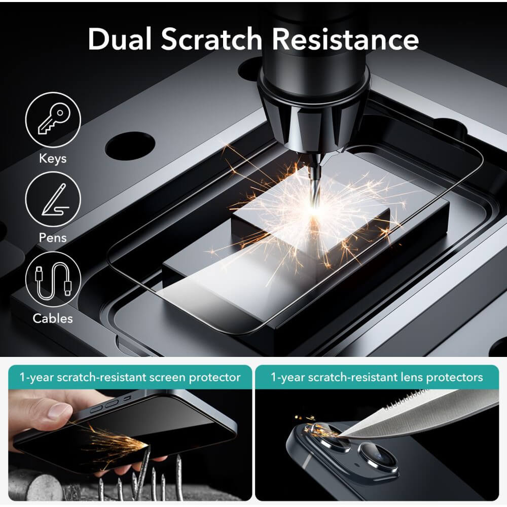 ESR 3D Full Cover Tempered Glass 2 Pack - 2 броя калени стъклени защитни покрития за дисплея на iPhone 15 (черен-прозрачен)