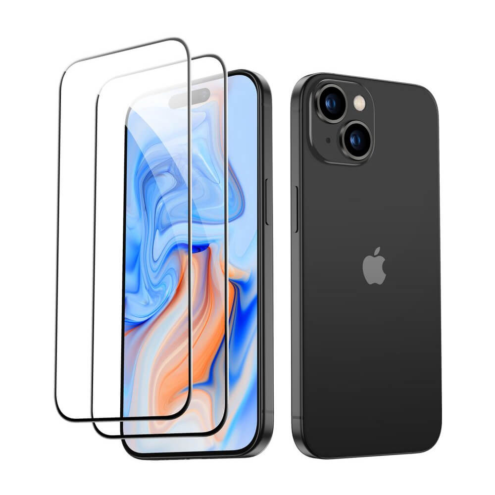 ESR 3D Full Cover Tempered Glass 2 Pack - 2 броя калени стъклени защитни покрития за дисплея на iPhone 15 Plus (черен-прозрачен)