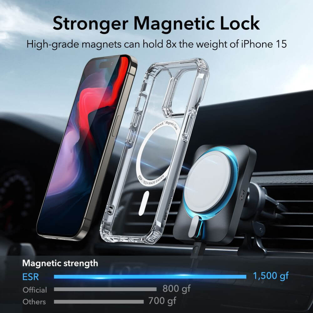 ESR Air Armor HaloLock MagSafe Case - хибриден удароустойчив кейс с MagSafe за iPhone 15 Pro (прозрачен)