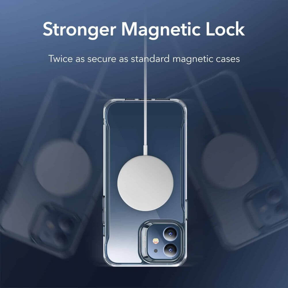 - Кейсът е снабден с магнит, благодарение на който е съвместим с MagSafe аксесоари. Това е изцяло нов стандарт за бързо и лесно свързване на аксесоари и безжични зарядни устройства