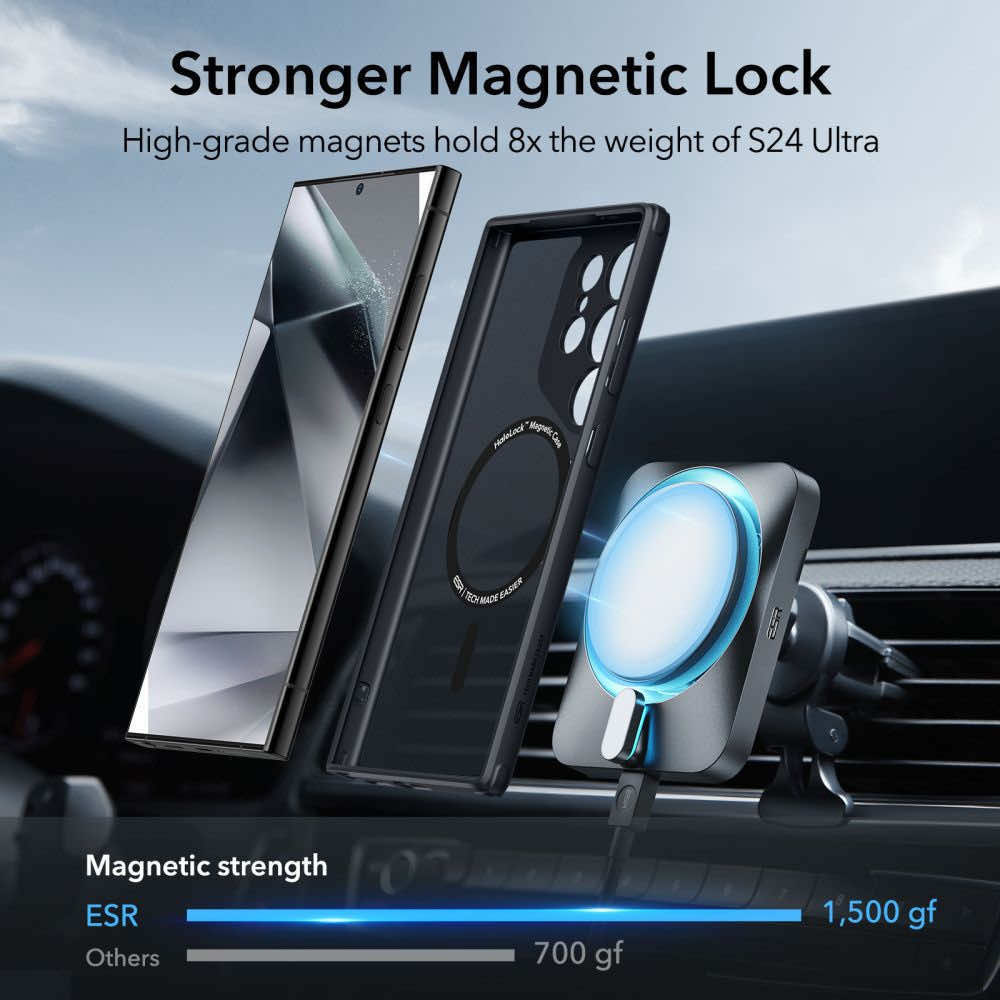 ESR Classic Hybrid HaloLock MagSafe Case - хибриден кейс с висока степен на защита с MagSafe за Samsung Galaxy S24 Ultra (черен-мат)