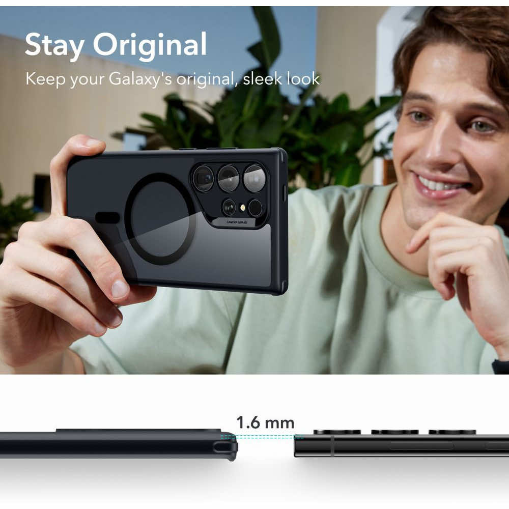 ESR Classic Hybrid HaloLock MagSafe Case - хибриден кейс с висока степен на защита с MagSafe за Samsung Galaxy S24 Ultra (черен-прозрачен)