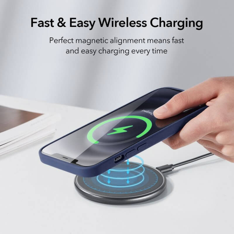 - Кейсът е снабден с магнит, благодарение на който е съвместим с MagSafe аксесоари. Това е изцяло нов стандарт за бързо и лесно свързване на аксесоари и безжични зарядни устройства