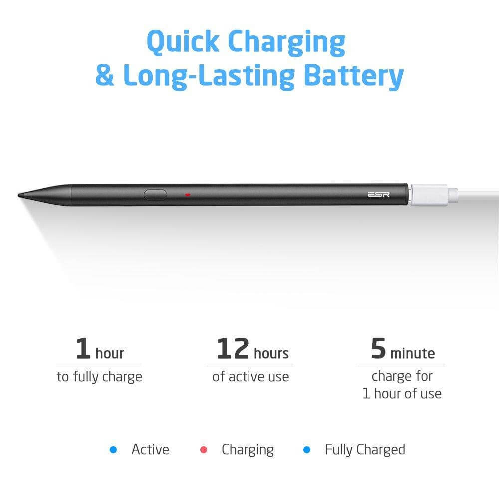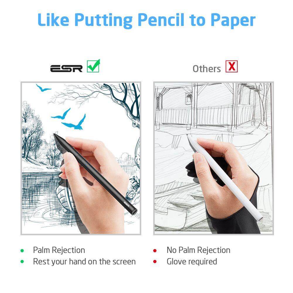 - ESR Digital Stylus Pen Plus има "Palm Rejection" функция, действа толкова бързо, колкото Apple Pencil, и не се изисква сдвояване или Bluetooth