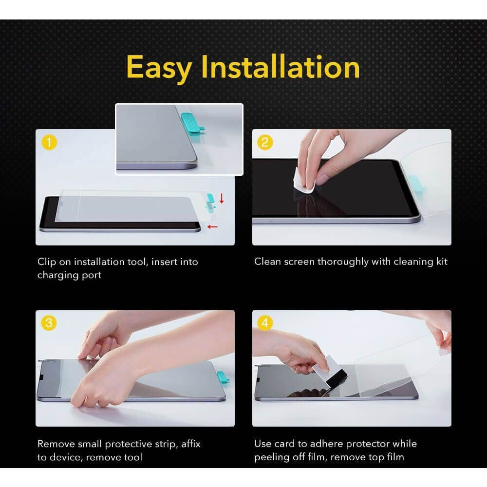 - 1 x ESR Paper Feel Screen Protector - 1 х мокра кърпичка - 1 x суха кърпичка - 1 х антистатична лепенка за премахване на прашинки