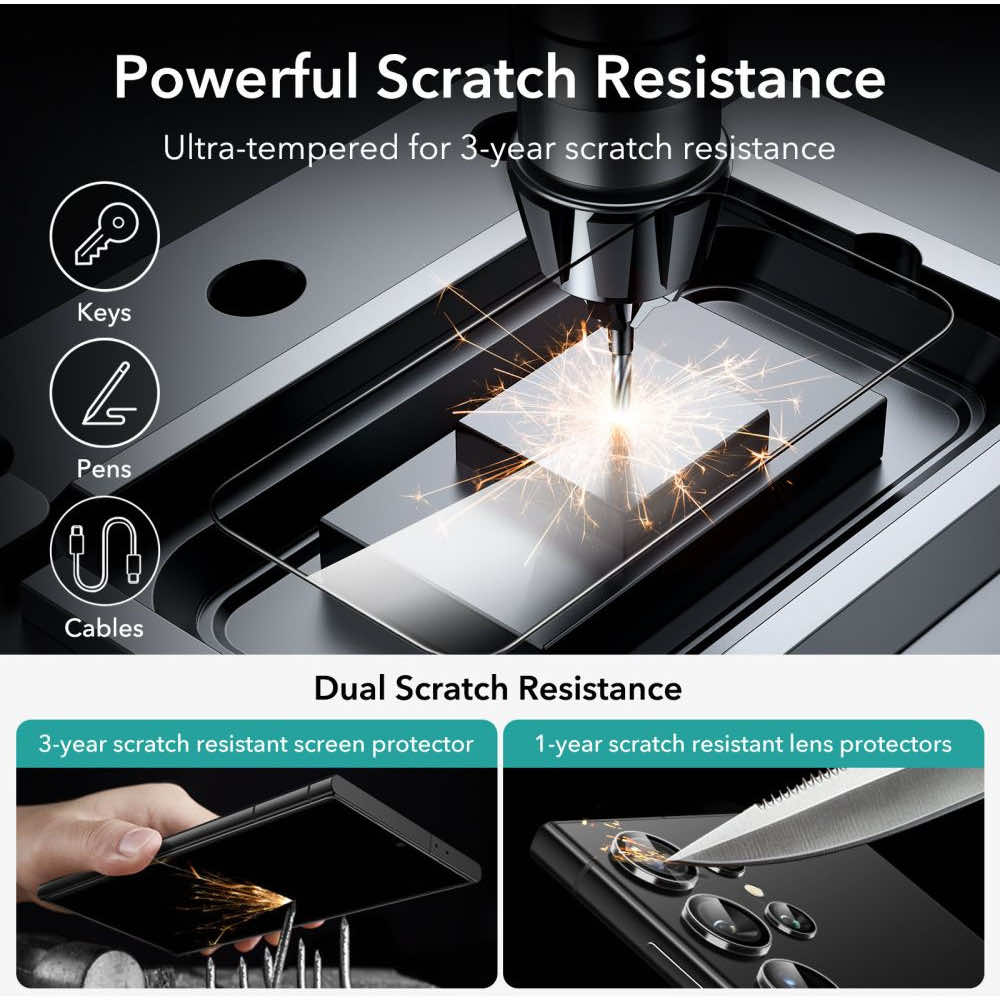 ESR Screen Shield Tempered Glass and Camera Glass Protection Set - комплект 2 броя стъклени защитни покрития за дисплея и 1 брой предпазни стъклени лещи за камерата на Samsung Galaxy S24 Ultra (черен-прозрачен)