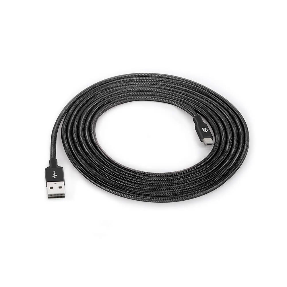 - Здрав, обвит във въжена оплетка кабел за устройства с microUSB порт