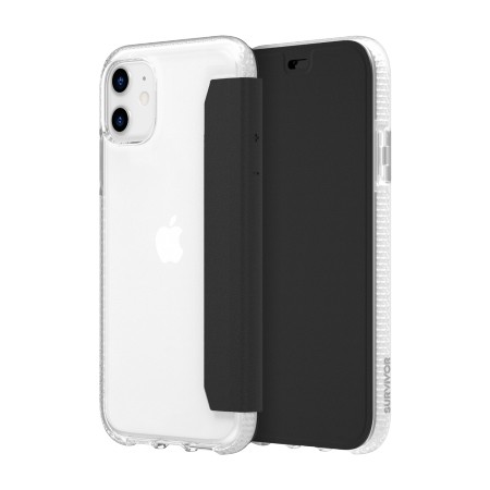 Griffin Survivor Clear Wallet - кожен калъф, тип портфейл с висока защита за iPhone 11 (черен-прозрачен)